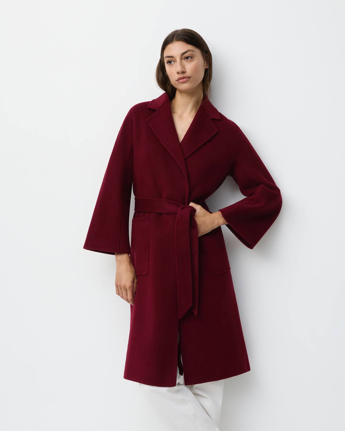 We've created the perfect coat for you. A classic timeless design made of cashmere blended with wool for warmth and durability. This coat can be worn tied up or open from day to night.