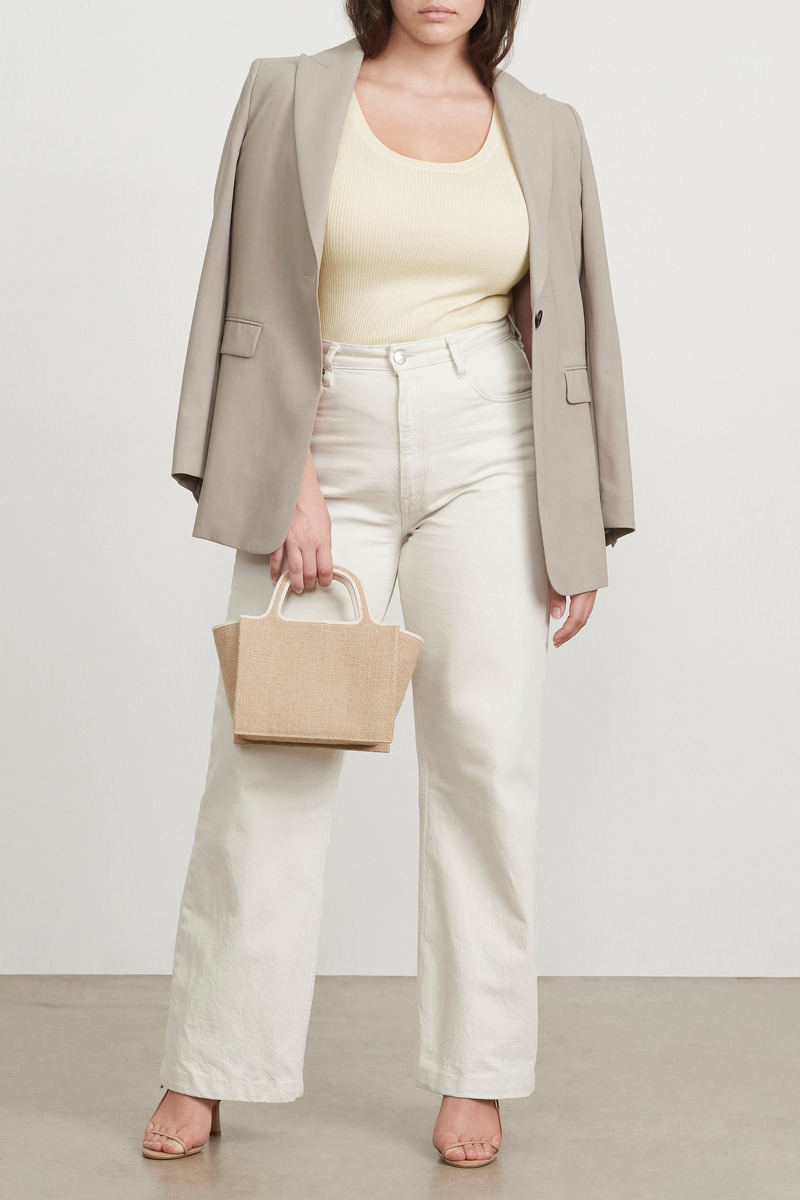 A spin on our classic leather tote. The perfect little bag for your summer coffee dates with the girls or a date night down the coast. Ideal for little bag for your spring & summer essentials. Created in a jute fabric.