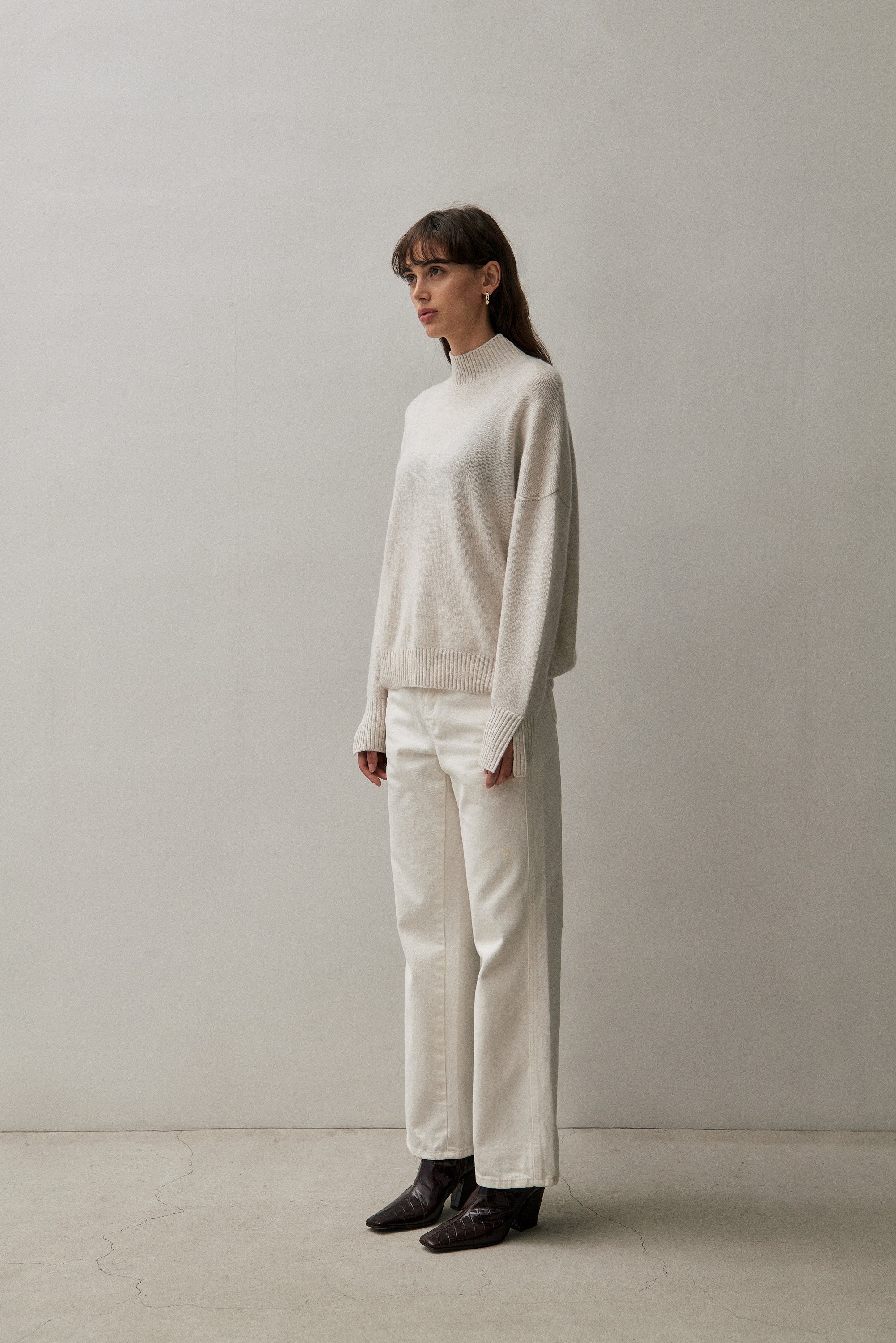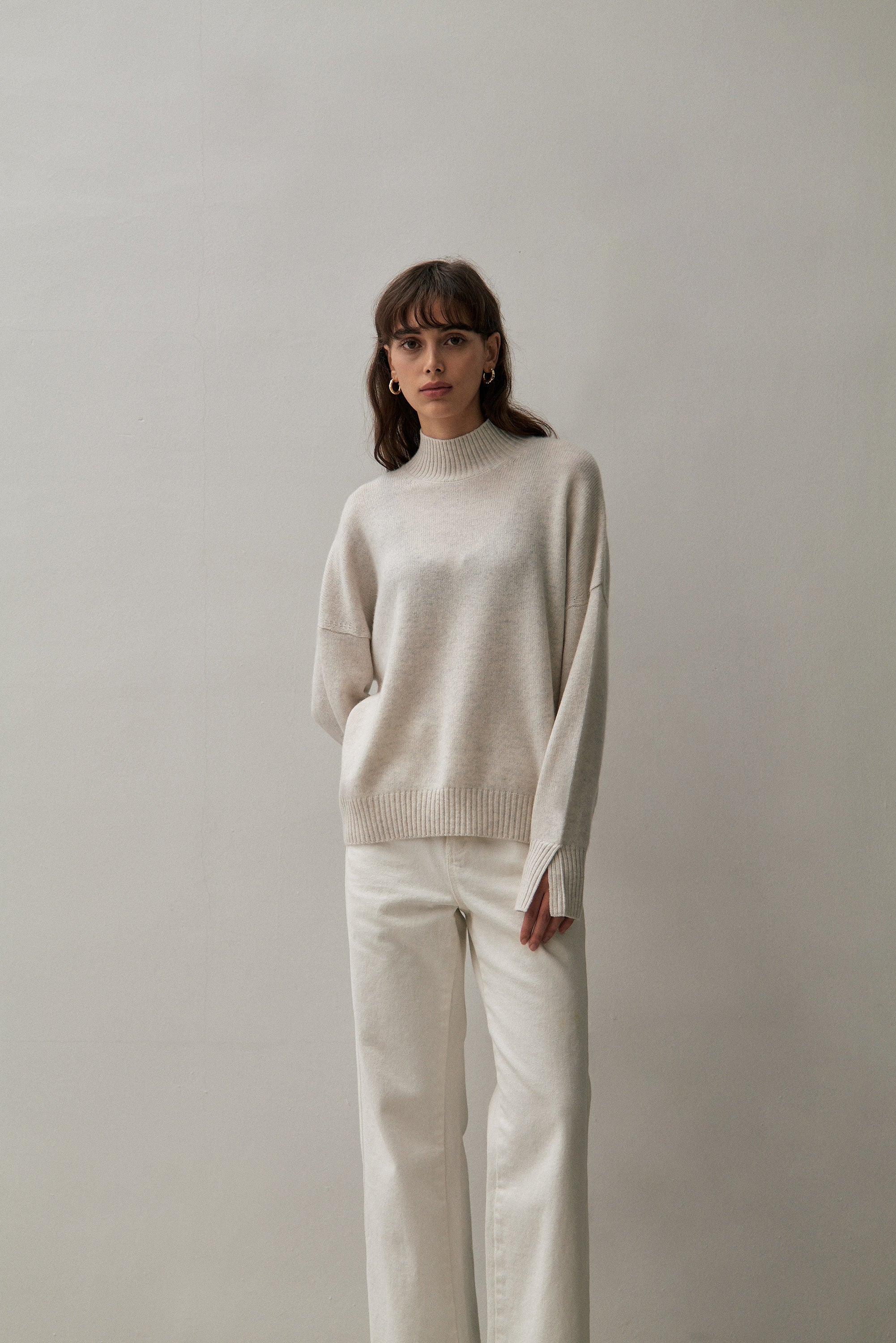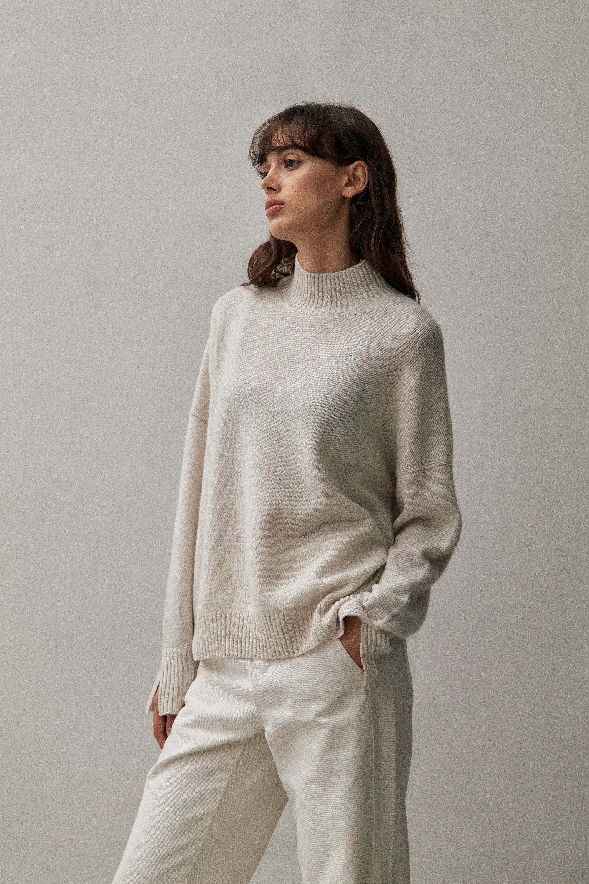 With a relaxed silhouette and split sleeves, The Mock Neck sweater is the most versatile piece to take you from casual to chic. This comfortable knit will be your ultimate staple this season.