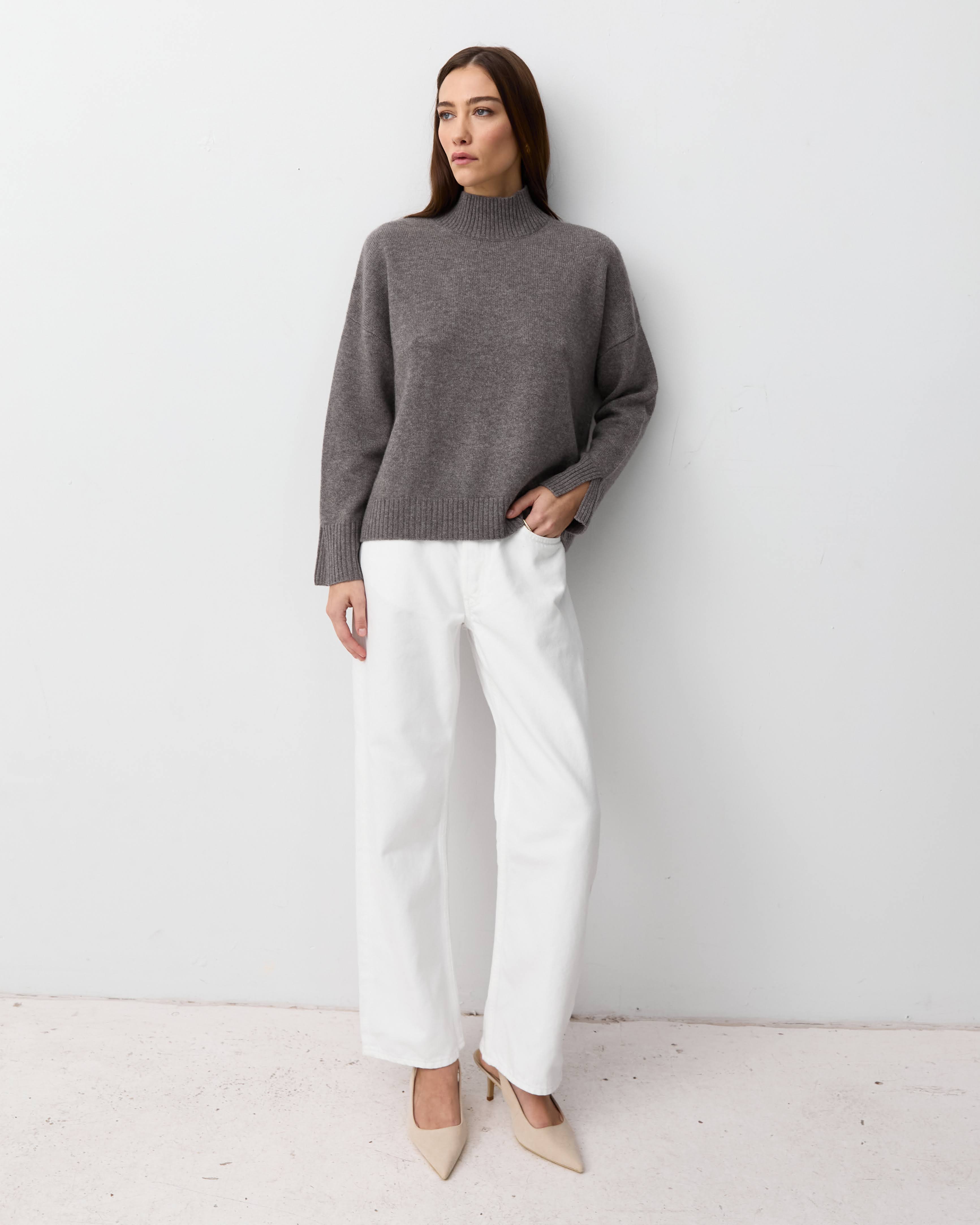 With a relaxed silhouette and split sleeves, The Mock Neck sweater is the most versatile piece to take you from casual to chic. This comfortable knit will be your ultimate staple this season.