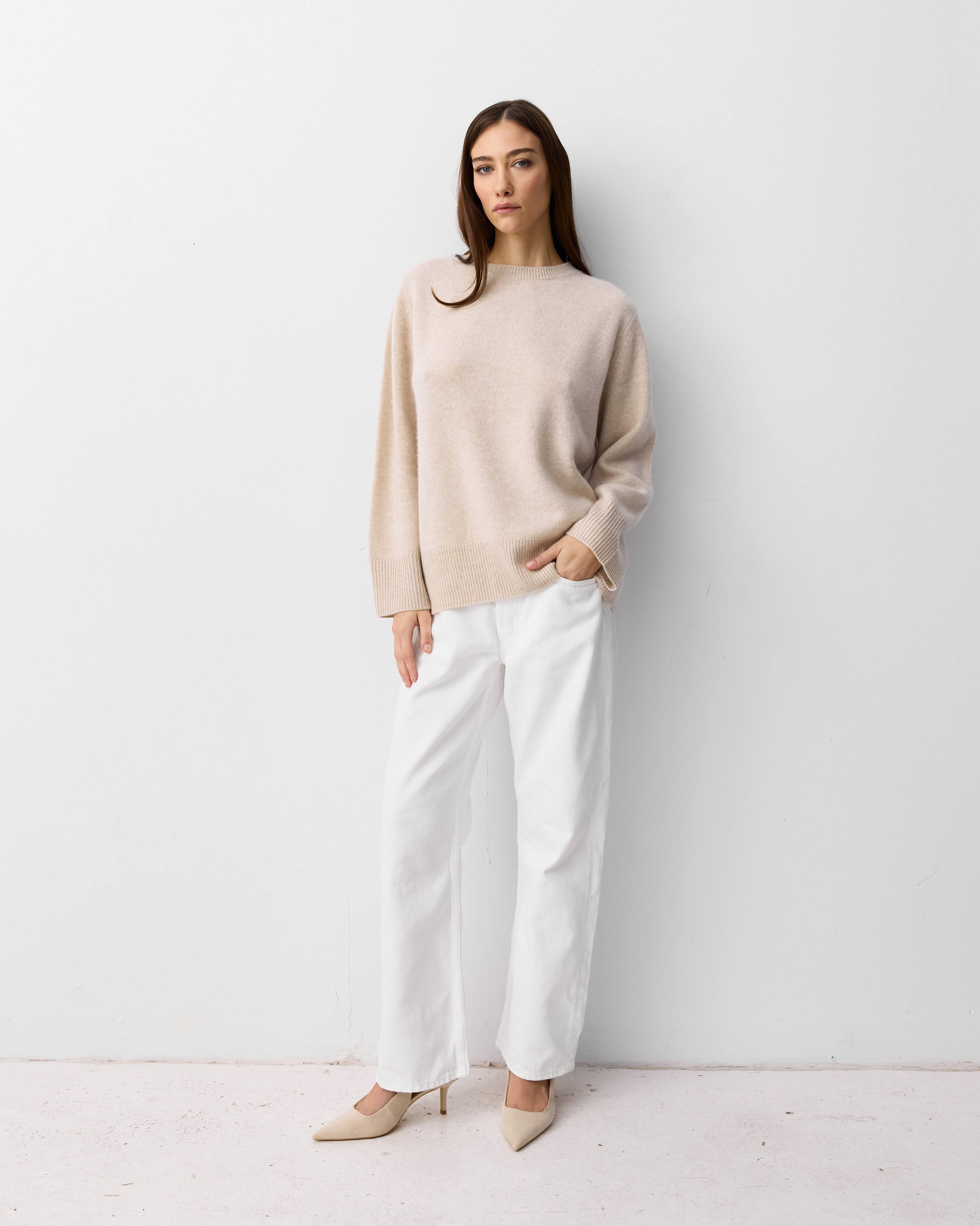 There is nothing more essential than a classic cashmere crew knit. Designed with a relaxed fit, bell sleeves and made with our signature royal cashmere this is a beautiful piece you can wear layered over denim or tucked into a silk skirt.