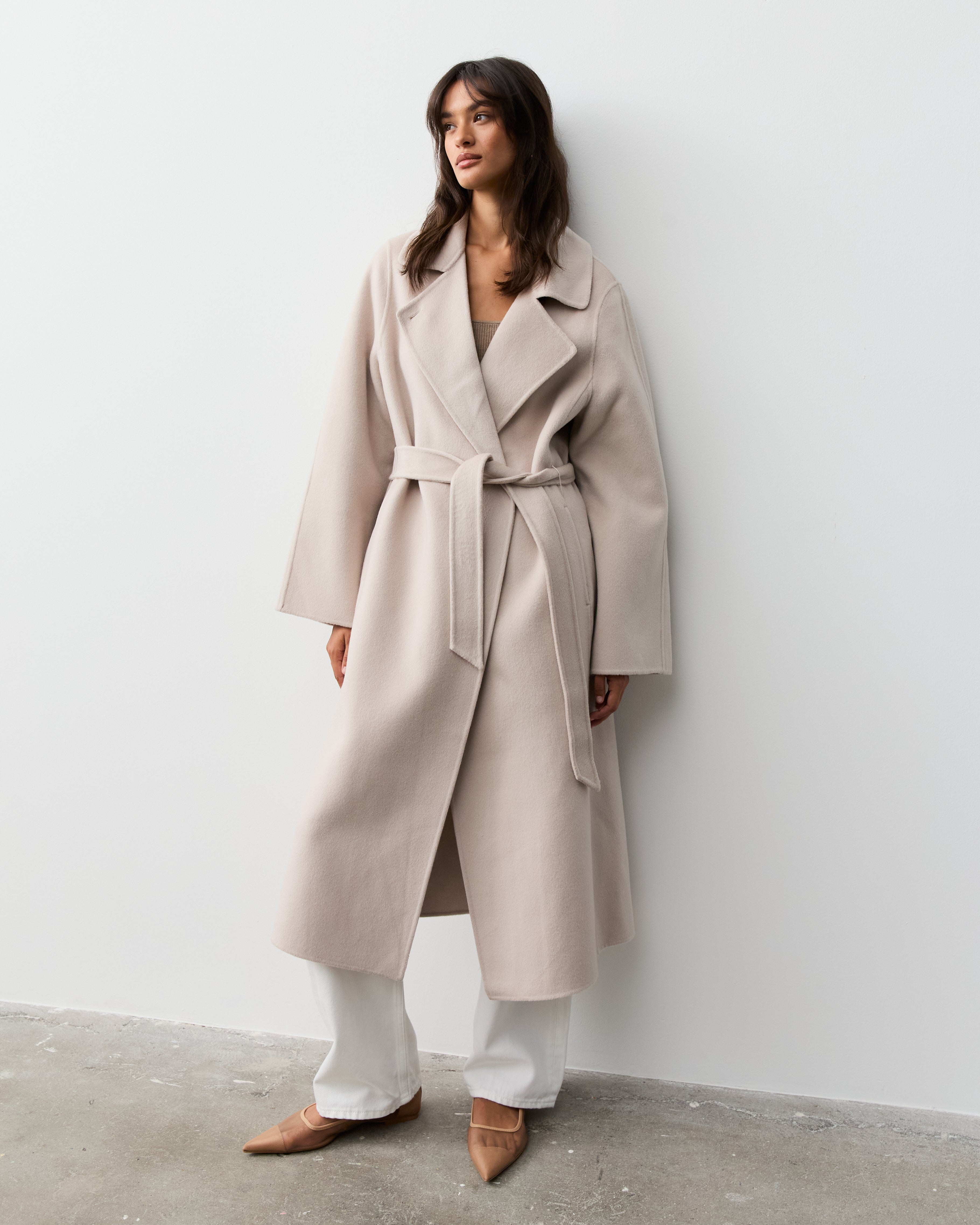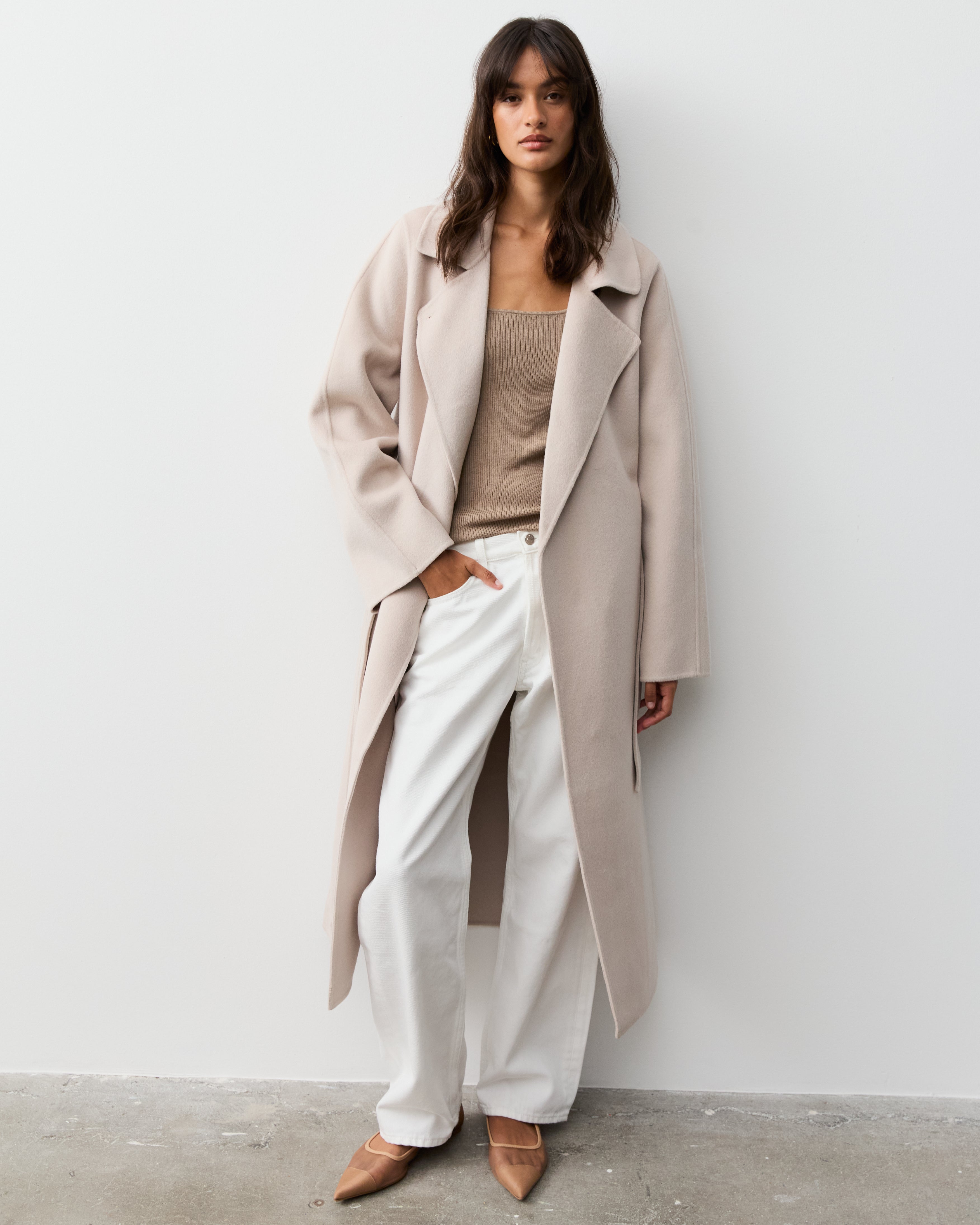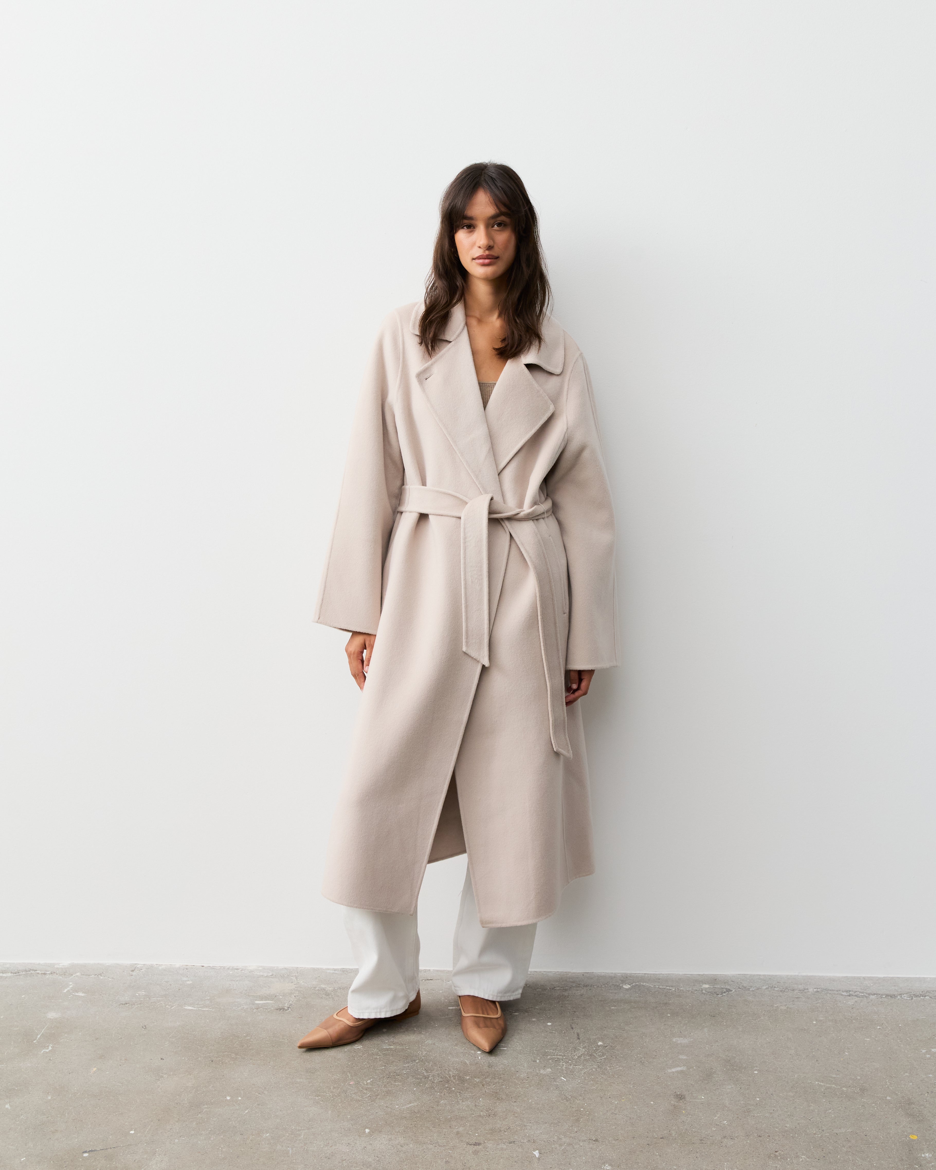 Discover our reworked tailored coat. Created with an elegant neckline and fitted sleeves this is the perfect coat that you can wear tied up or undone. It's the perfect to take you from corporate meetings to cocktails.