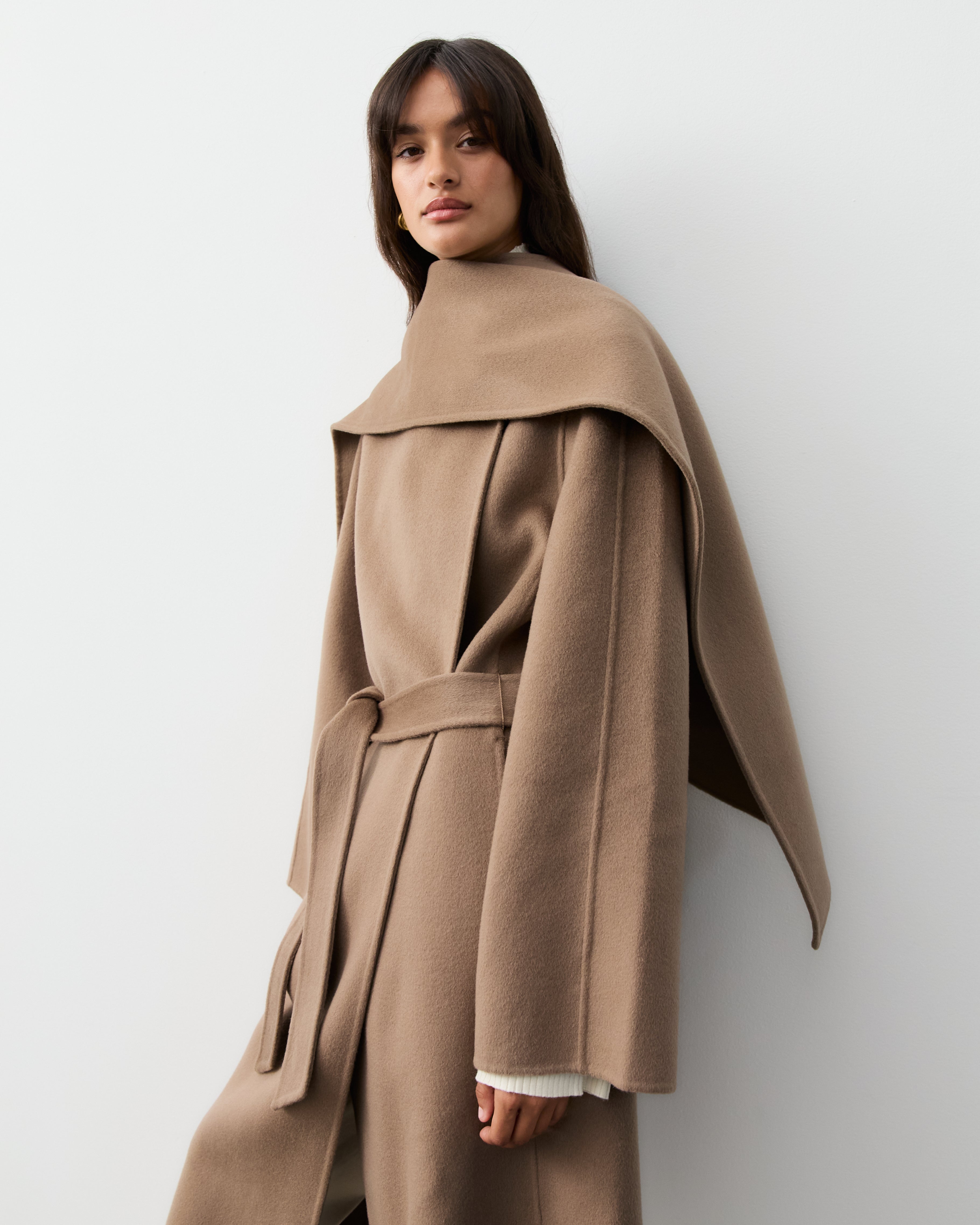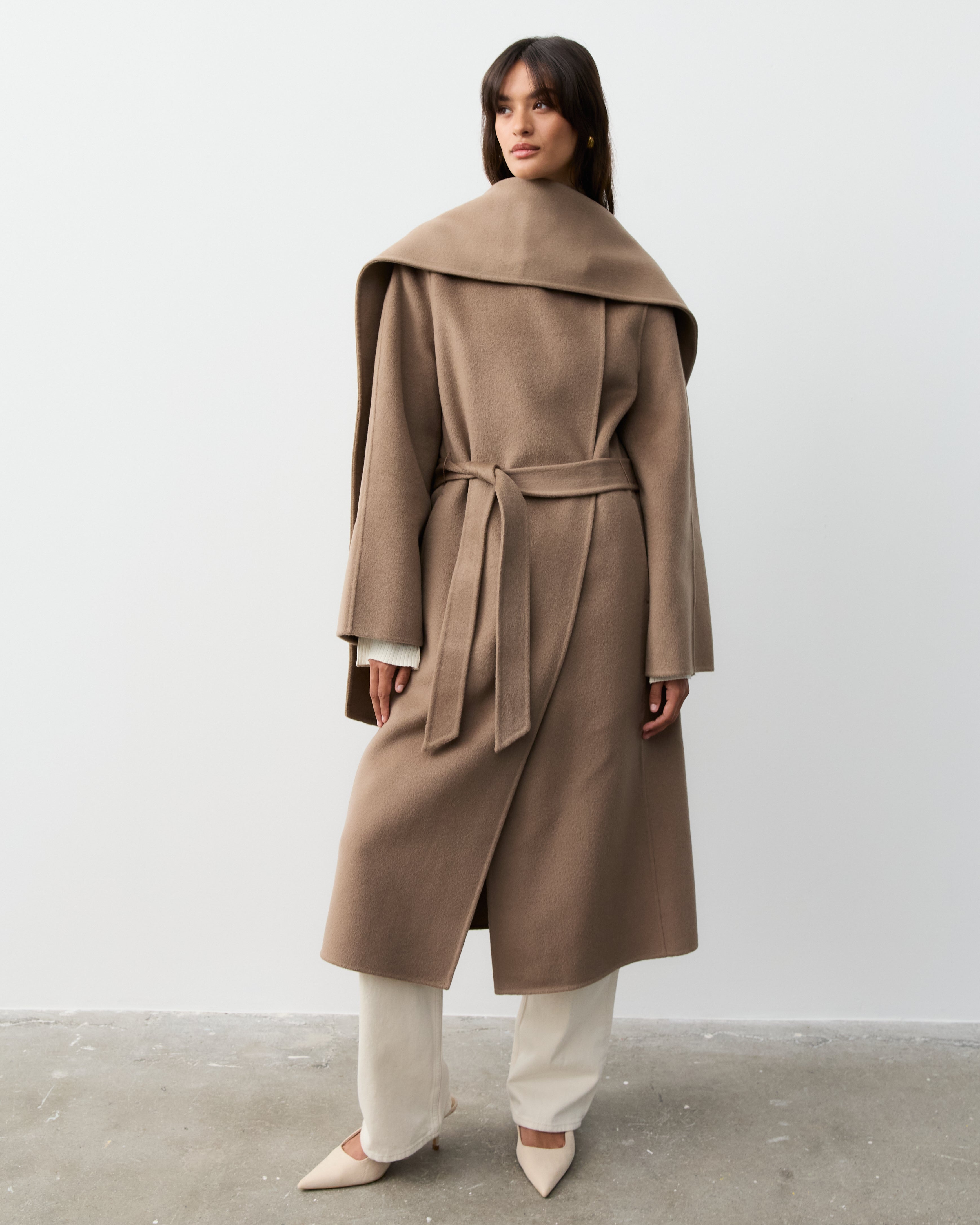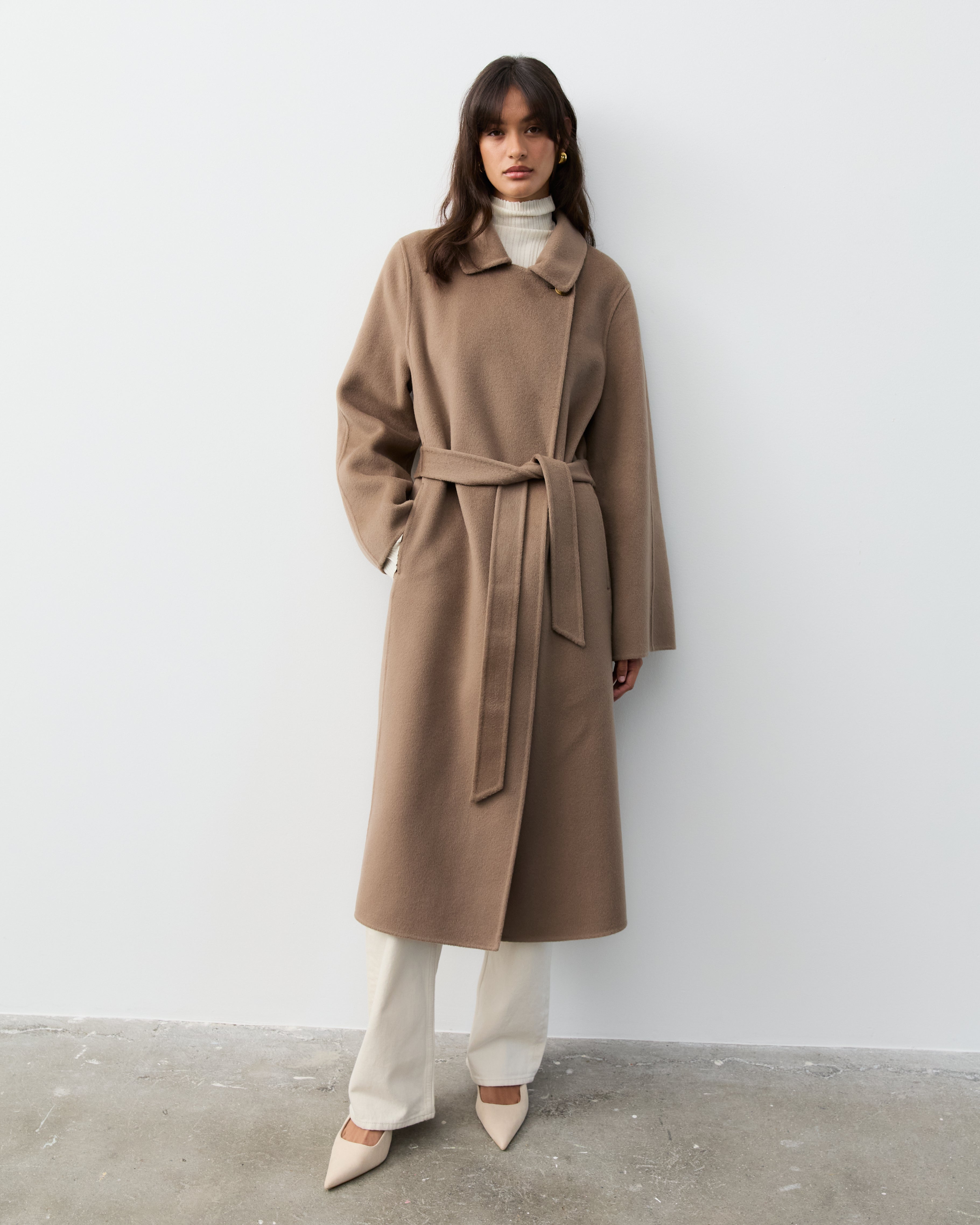 Our double faced coats are created with our signature blends of cashmere and superfine merino wool, sourced from Inner Mongolia. This cashmere is celebrated for its softness, warmth, and lightweight properties, making it an ideal choice for luxurious outerwear. Complementing the cashmere, our fine merino wool is known for its incredible softness and excellent thermal regulation, adding durability and resilience to the fabric, ensuring our coats maintain their shape and beauty over time.