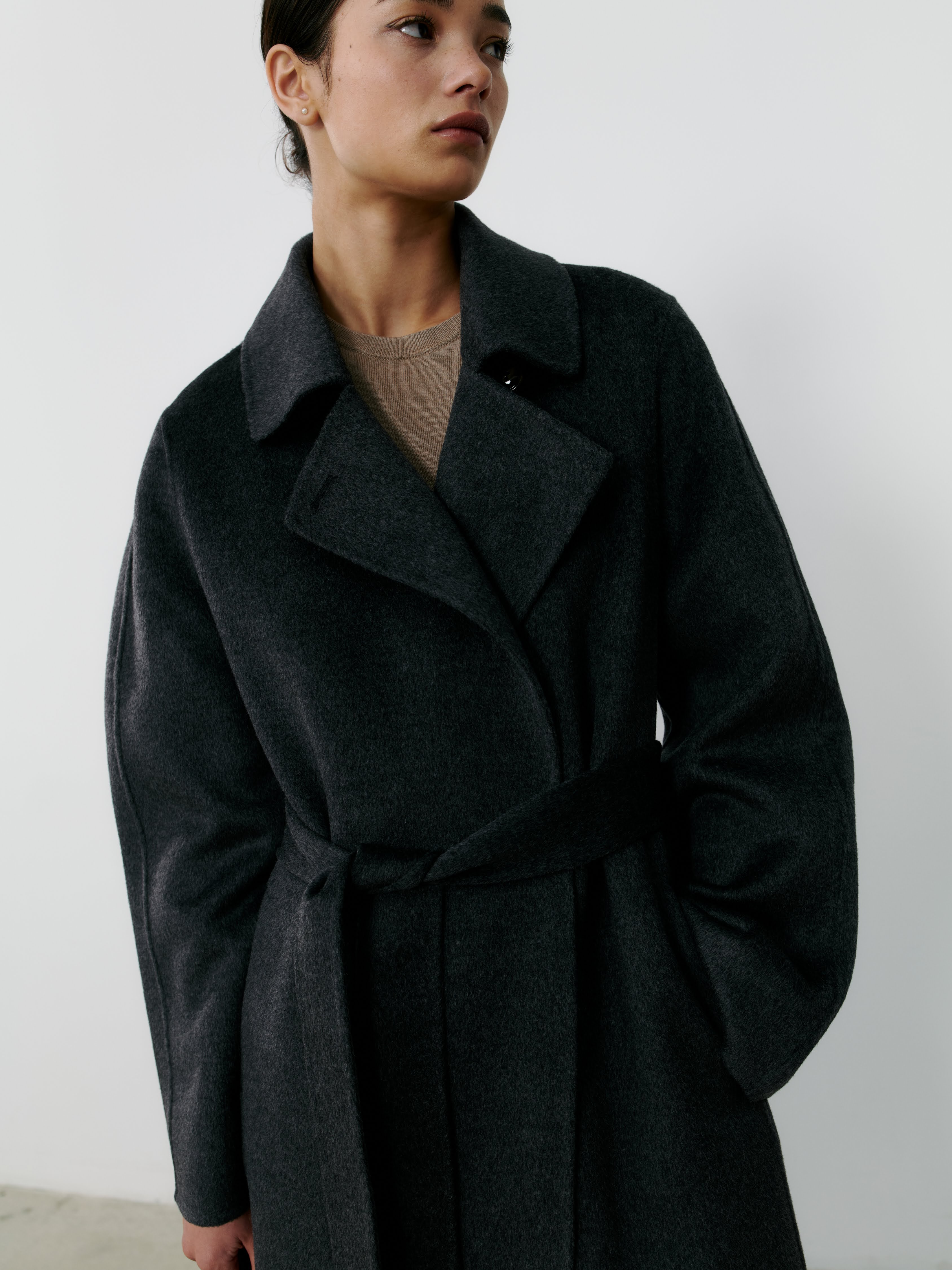 Discover our reworked tailored coat. Created with an elegant neckline and fitted sleeves this is the perfect coat that you can wear tied up or undone. It's the perfect to take you from corporate meetings to cocktails.