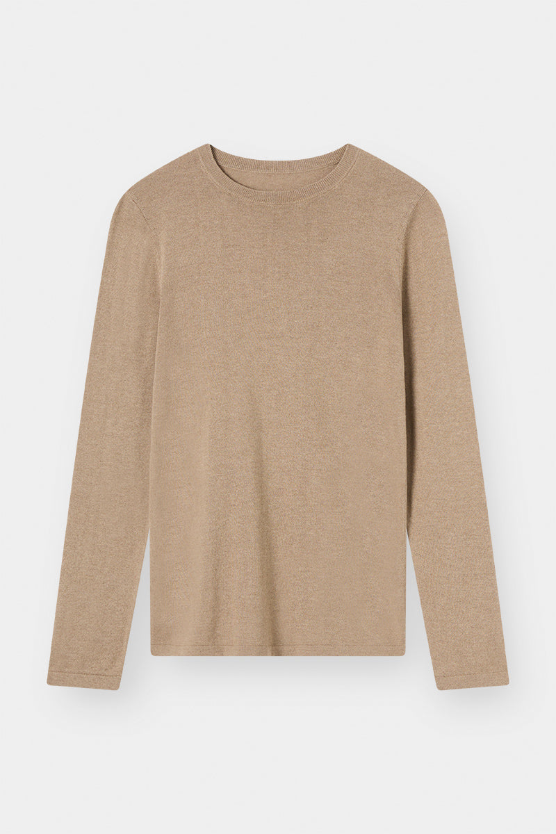 Expanding our curated essentials with a classic crew long sleeve top. Created with our signature silk and cashmere blended yarn you can use this top for all types of layering. Whether it be as a thermal layer for the skiing, to paired with a silk skirt and sling backs for spring.
