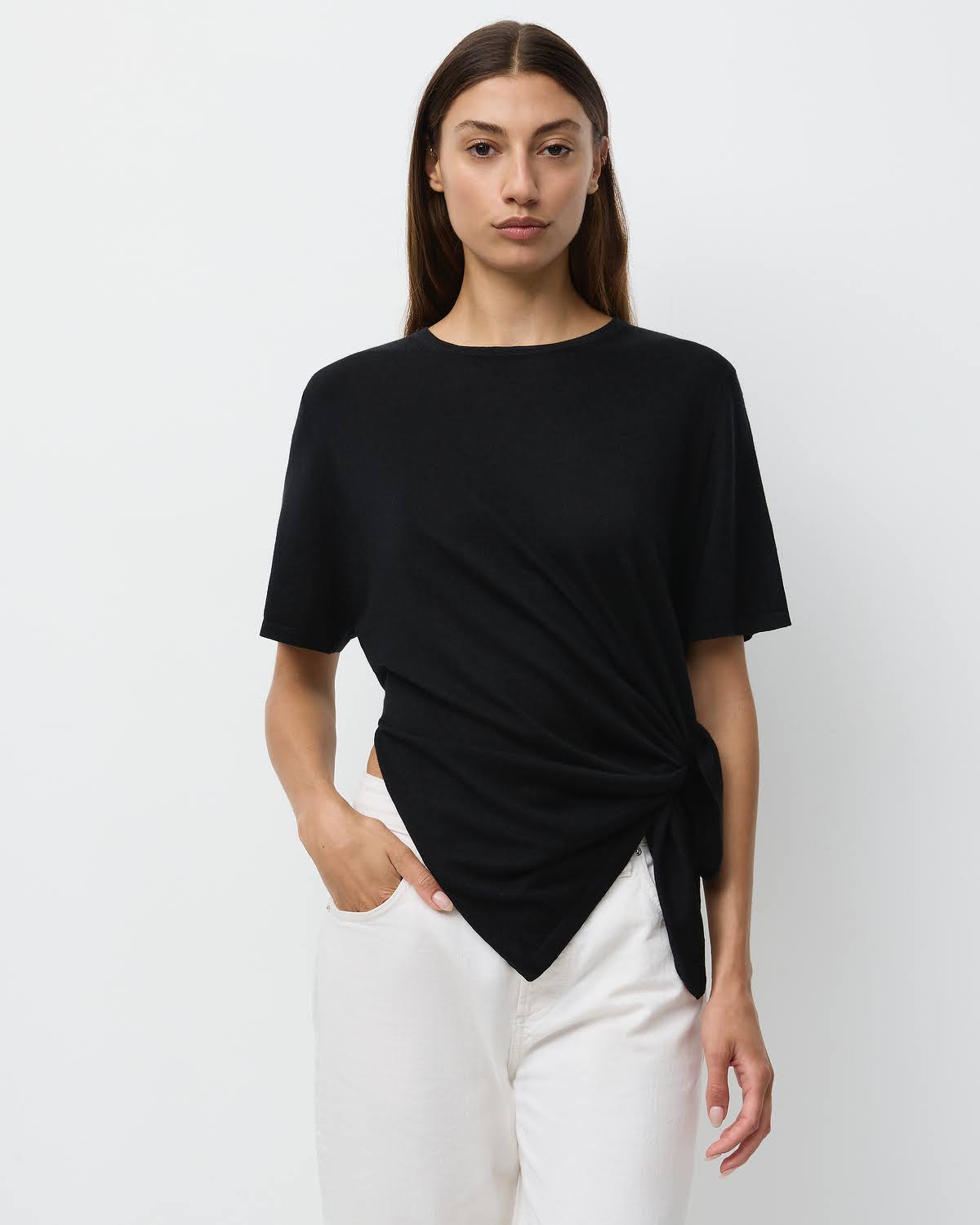 Elevate your essentials drawer with this luxurious silk and cashmere blend knit tee. Designed for a relaxed fit that’s perfect for layering, it has elegant short sleeves and a rounded neckline.
