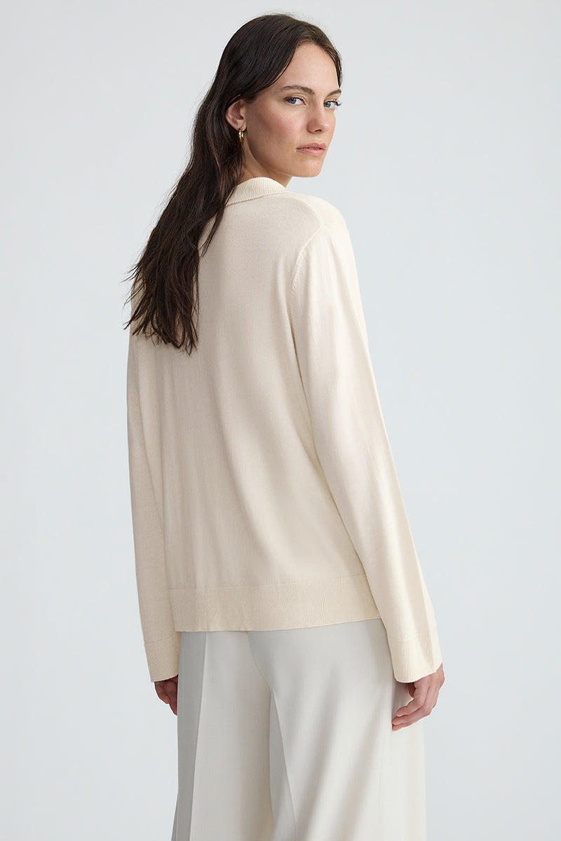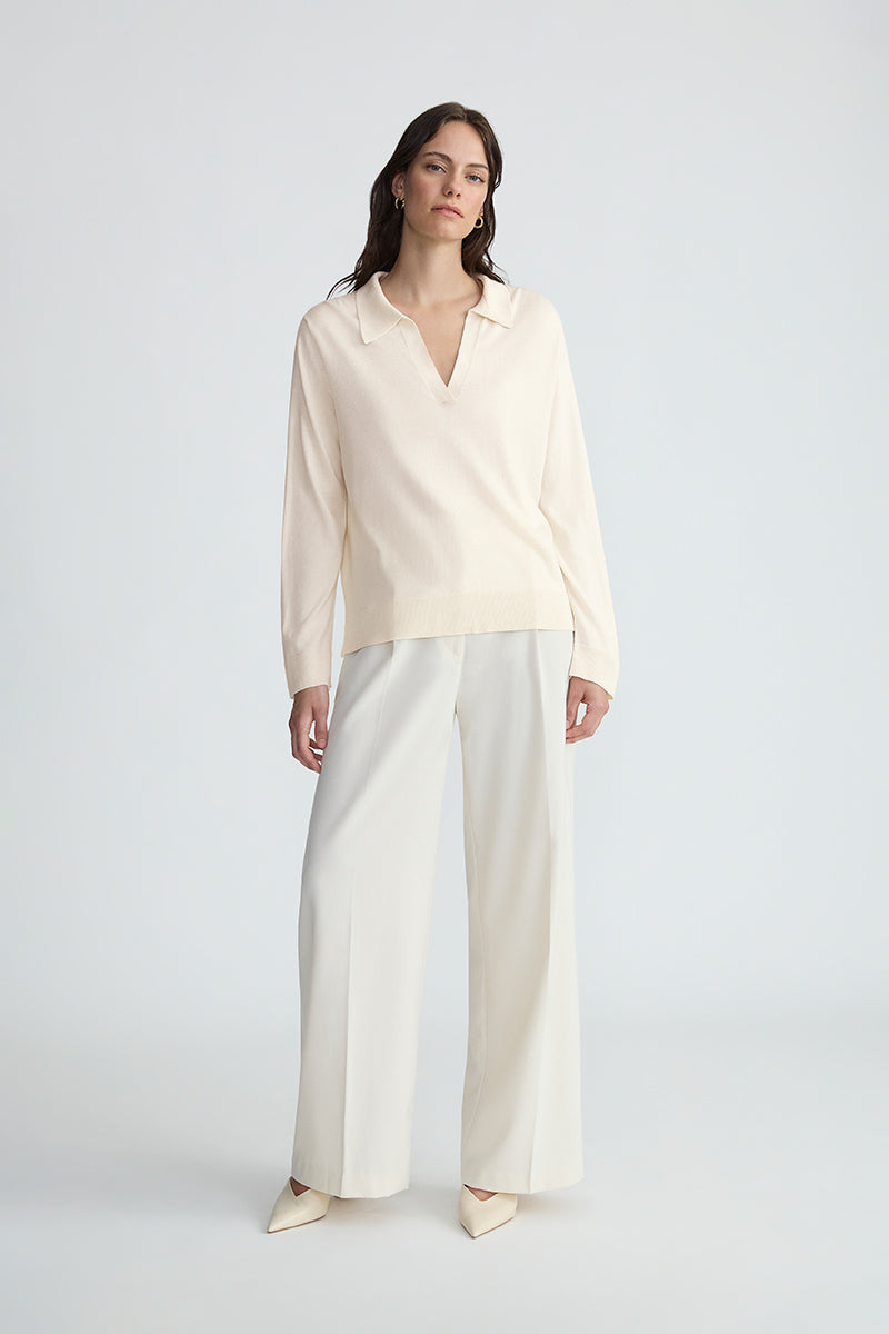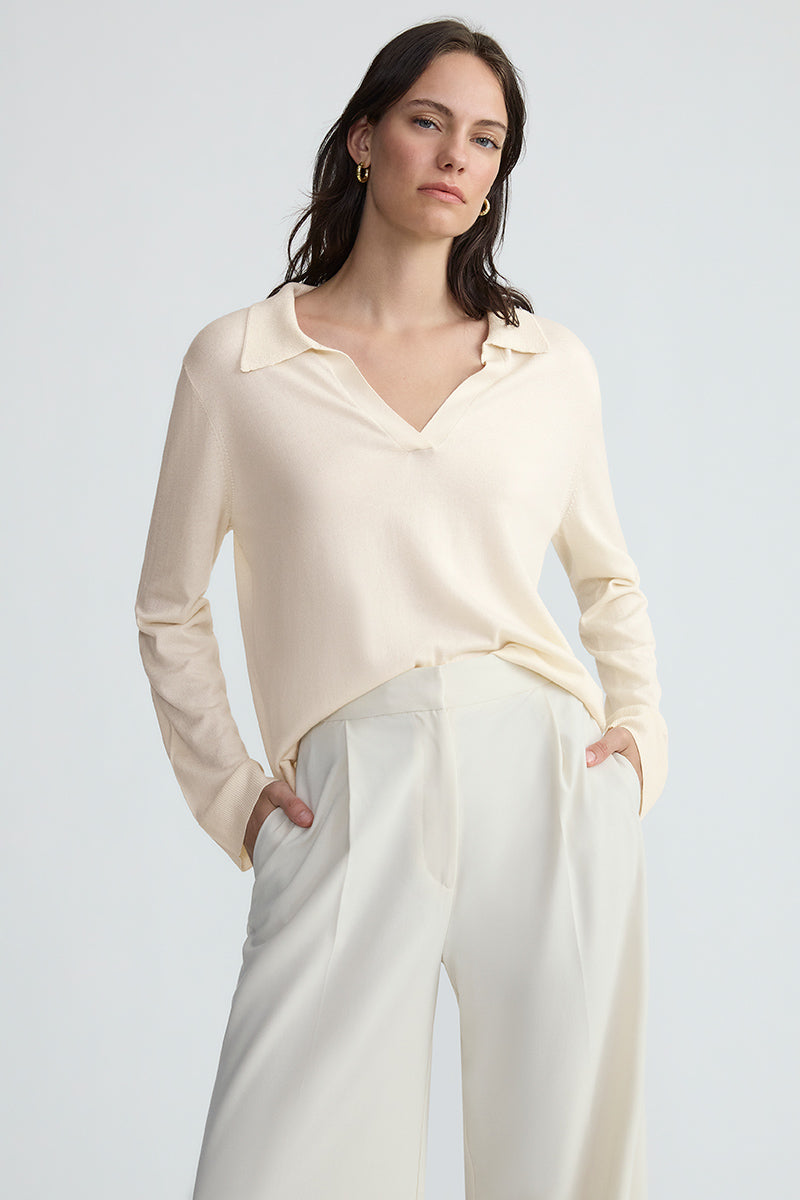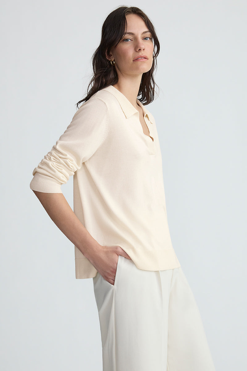 Introducing The Silk Polo sweater, the epitome of style and comfort. Crafted from a premium blend of silk and cashmere, this sweater offers an unbeatable combination of softness, warmth, and breathability. Featuring a refined collar and ribbed details, making it perfect for both casual and formal occasions.
