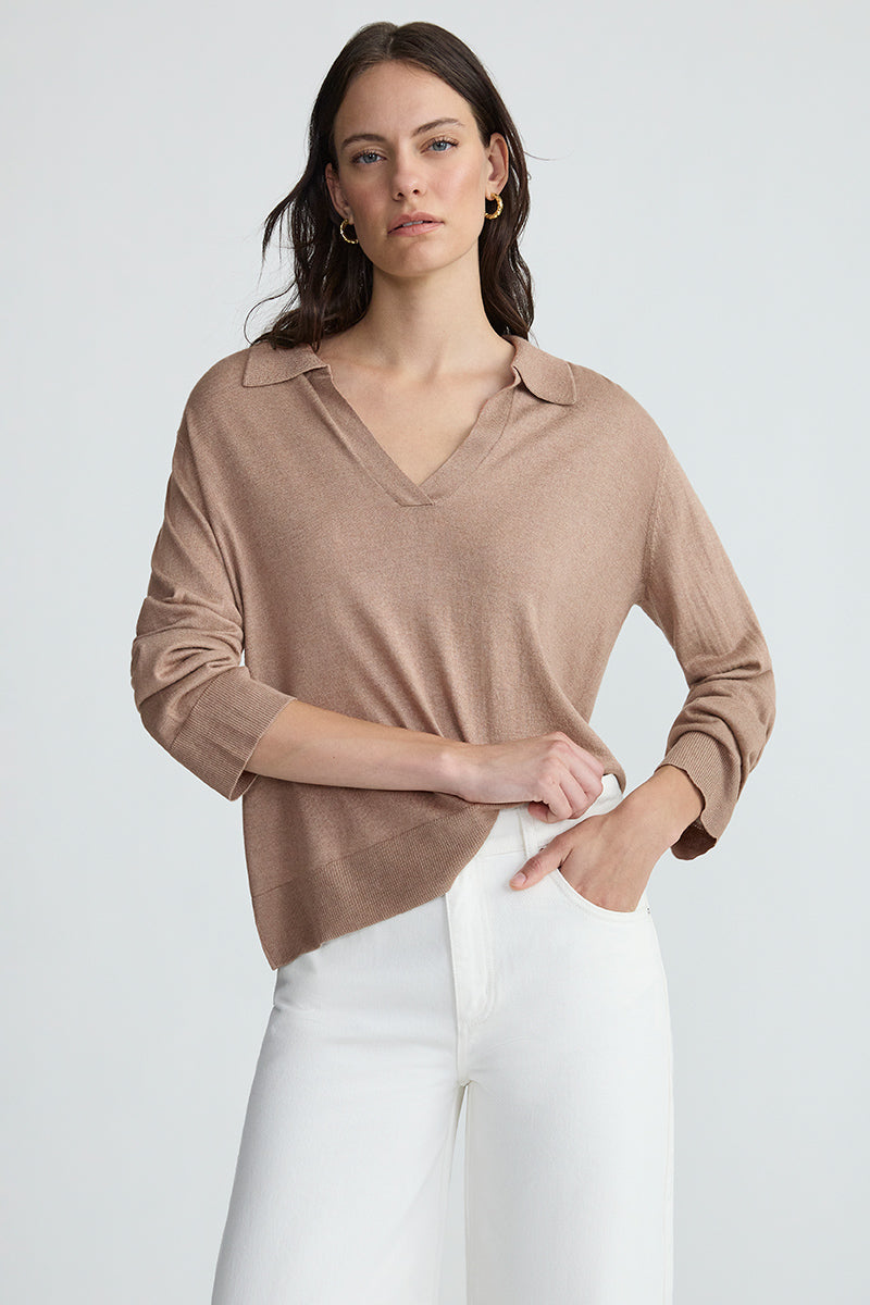 Introducing The Silk Polo sweater, the epitome of style and comfort. Crafted from a premium blend of silk and cashmere, this sweater offers an unbeatable combination of softness, warmth, and breathability. Featuring a refined collar and ribbed details, making it perfect for both casual and formal occasions.