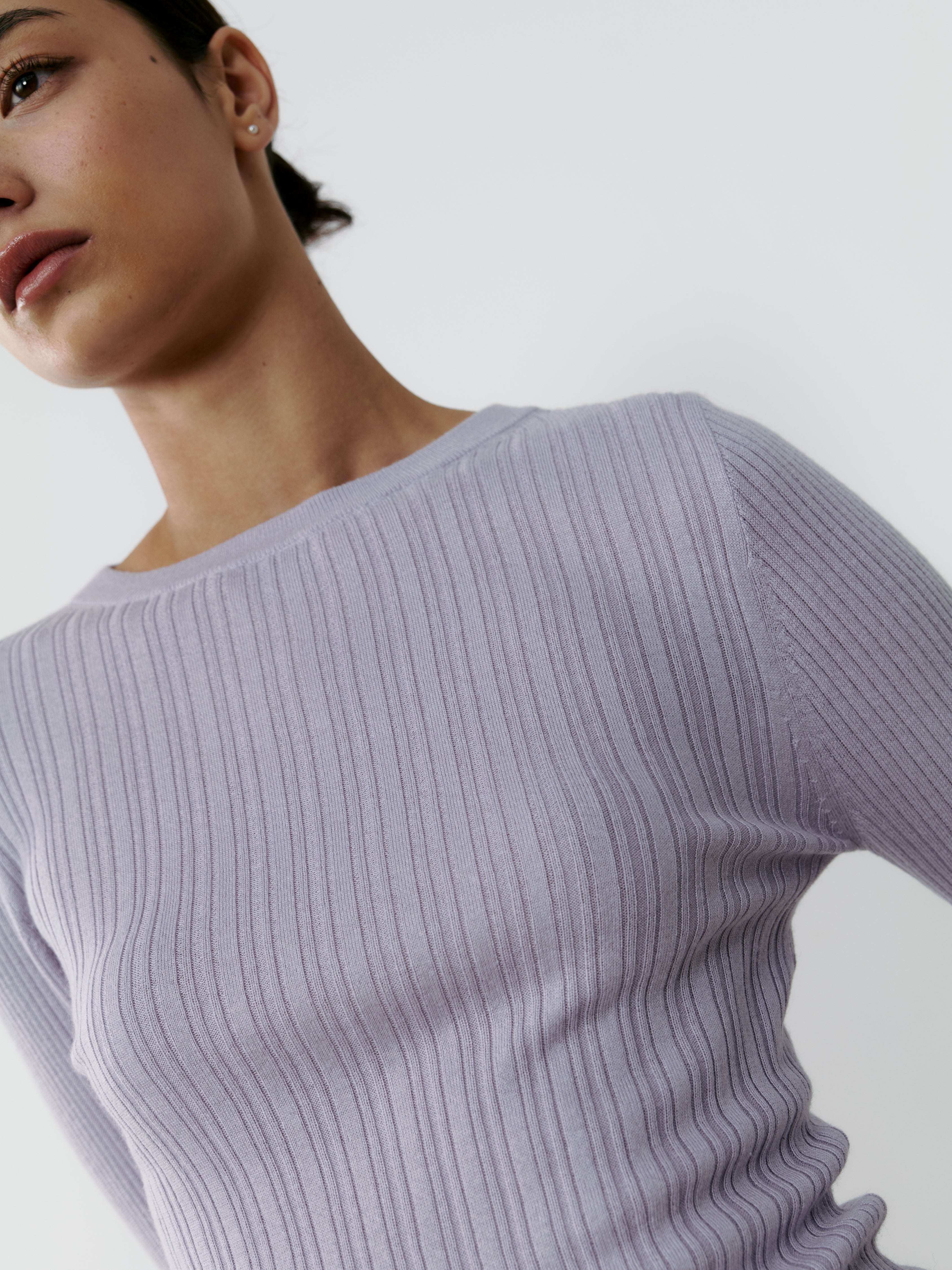The perfect silk essentials you'll layer all year round. Created in our ethically certified factories with our signature silk cashmere blend. An elegant long sleeve boat neck top with a ribbed detail. Perfect to pair with your favourite denim and ballet flats or suit pants and blazer. Serving you both casual and corporate.
