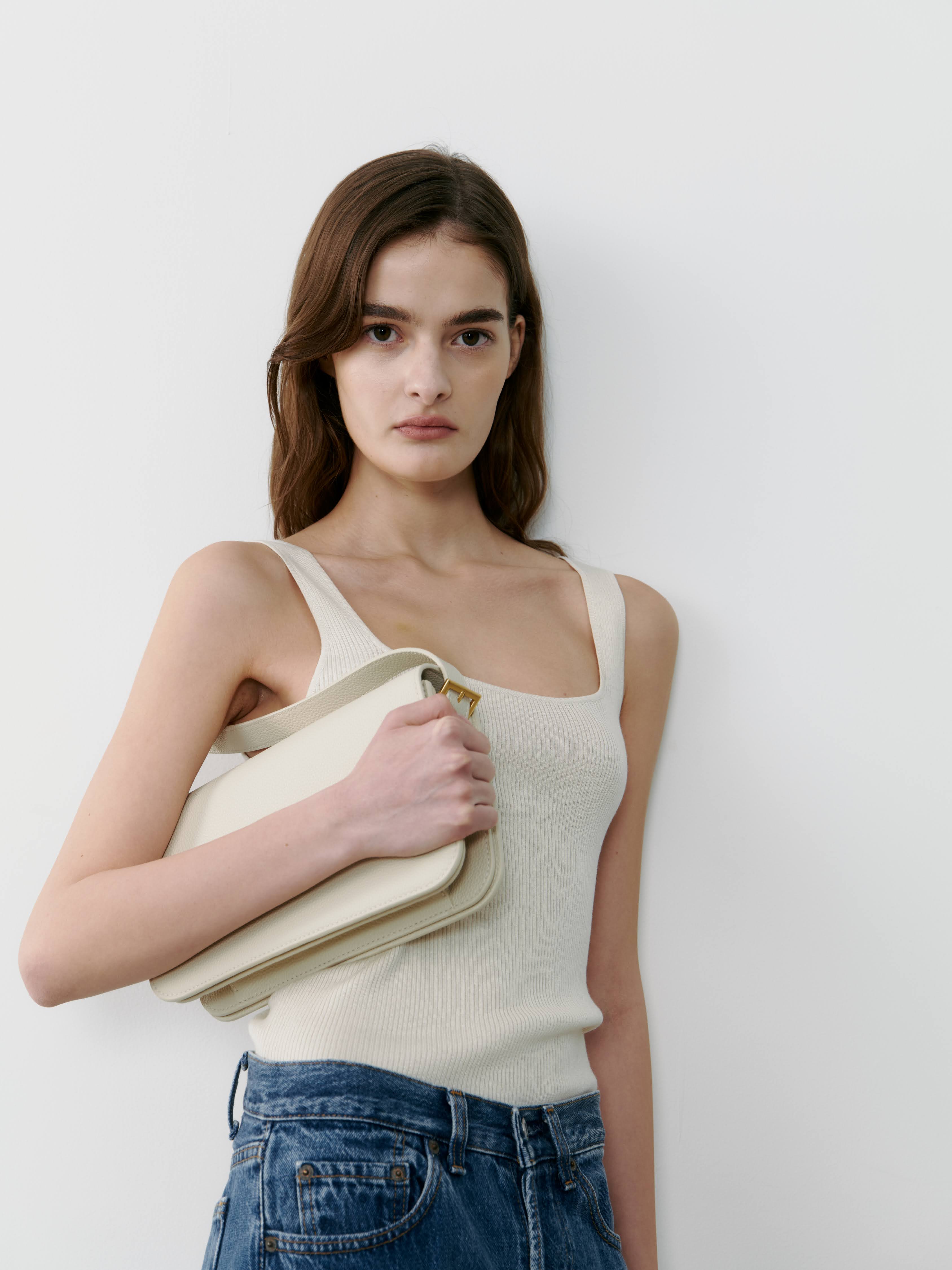 Introducing our newest sleeveless staple, presented in our favourite neutral hues. The gently squared neckline lends an elegant touch, while the ribbed silk and cashmere blend exudes luxury. With a subtle stretch and slim fit, this piece effortlessly elevates any outfit.