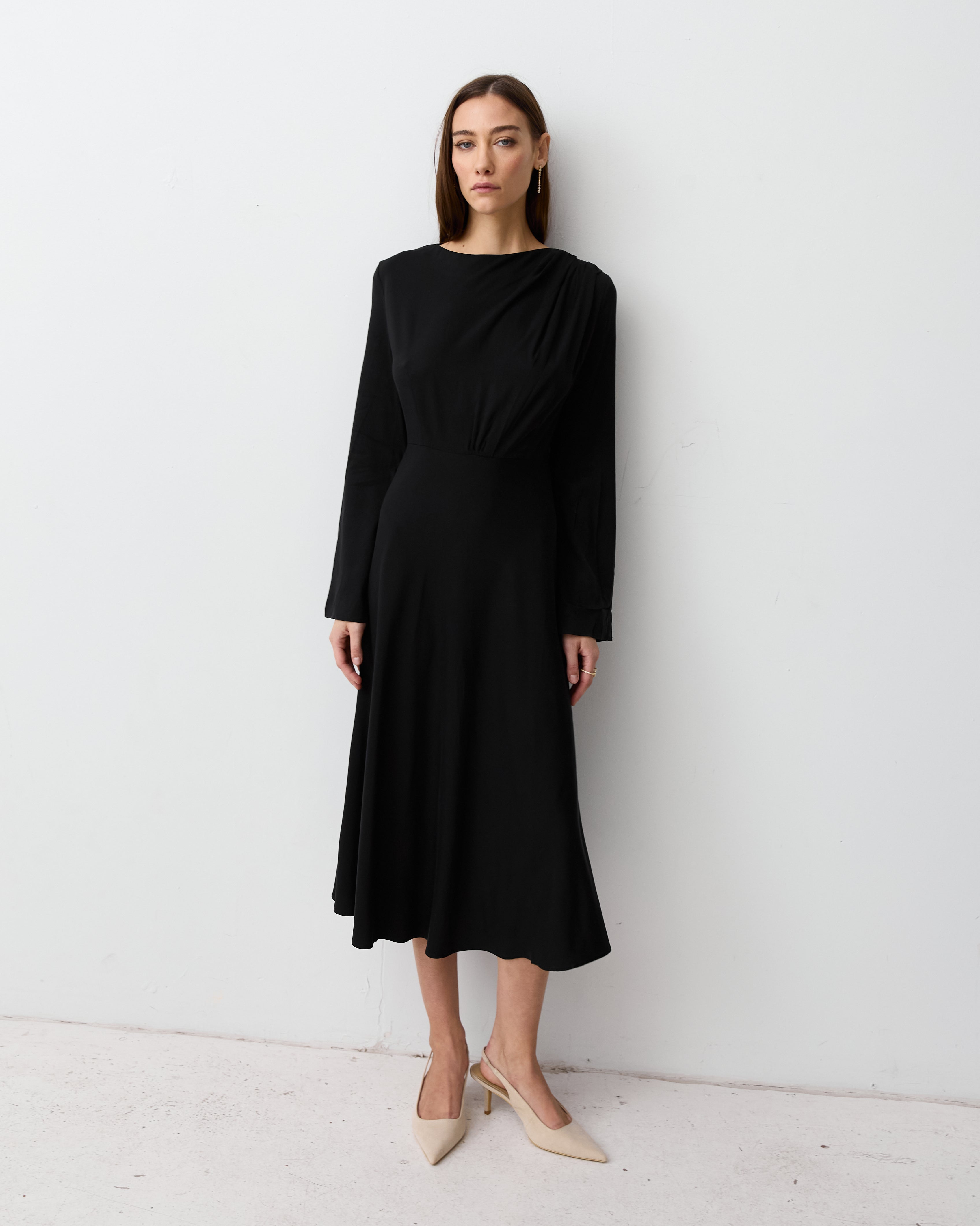 THE LONG SLEEVE DRAPED DRESS- BLACK