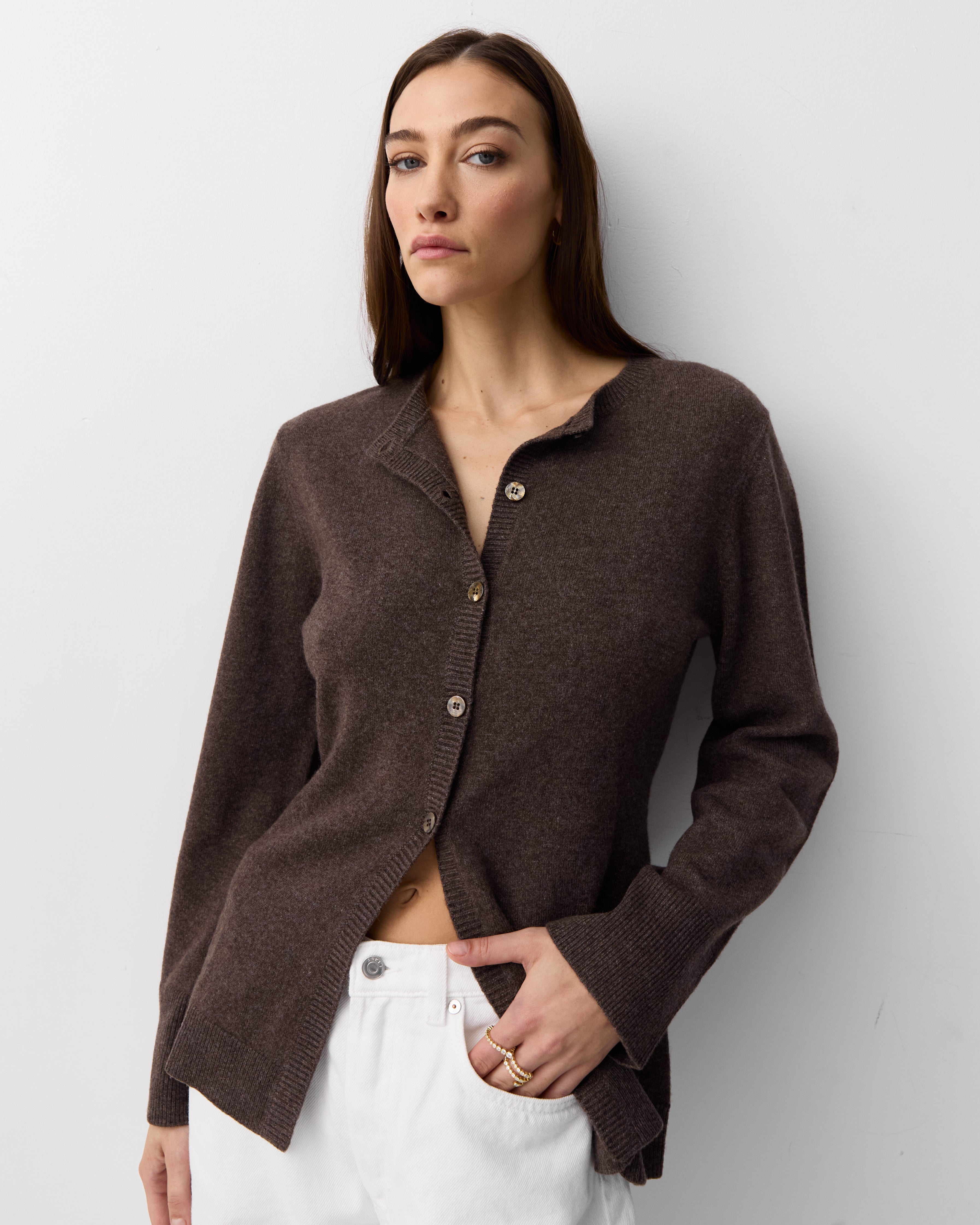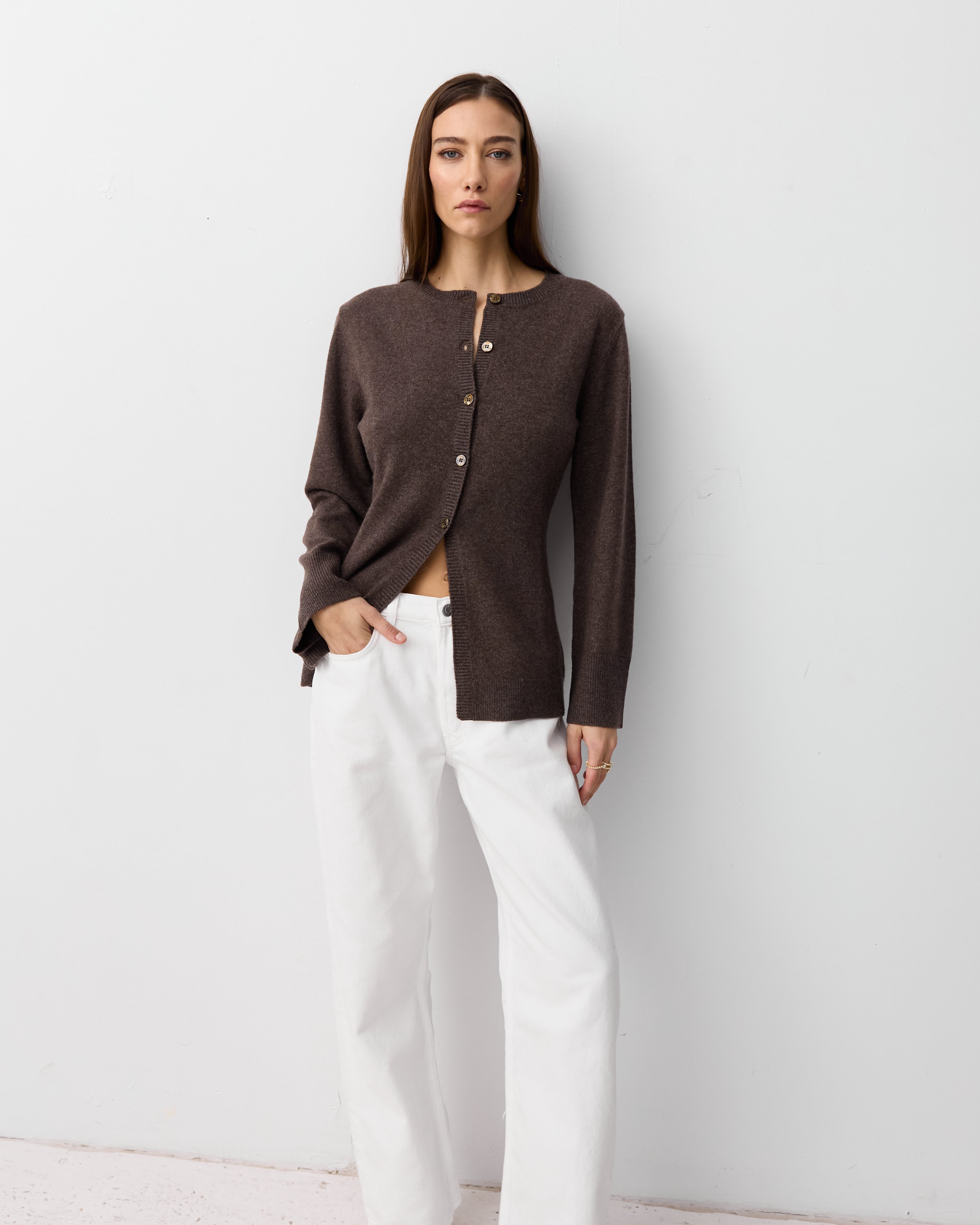 THE TAILORED CARDIGAN - CHESTNUT BROWN