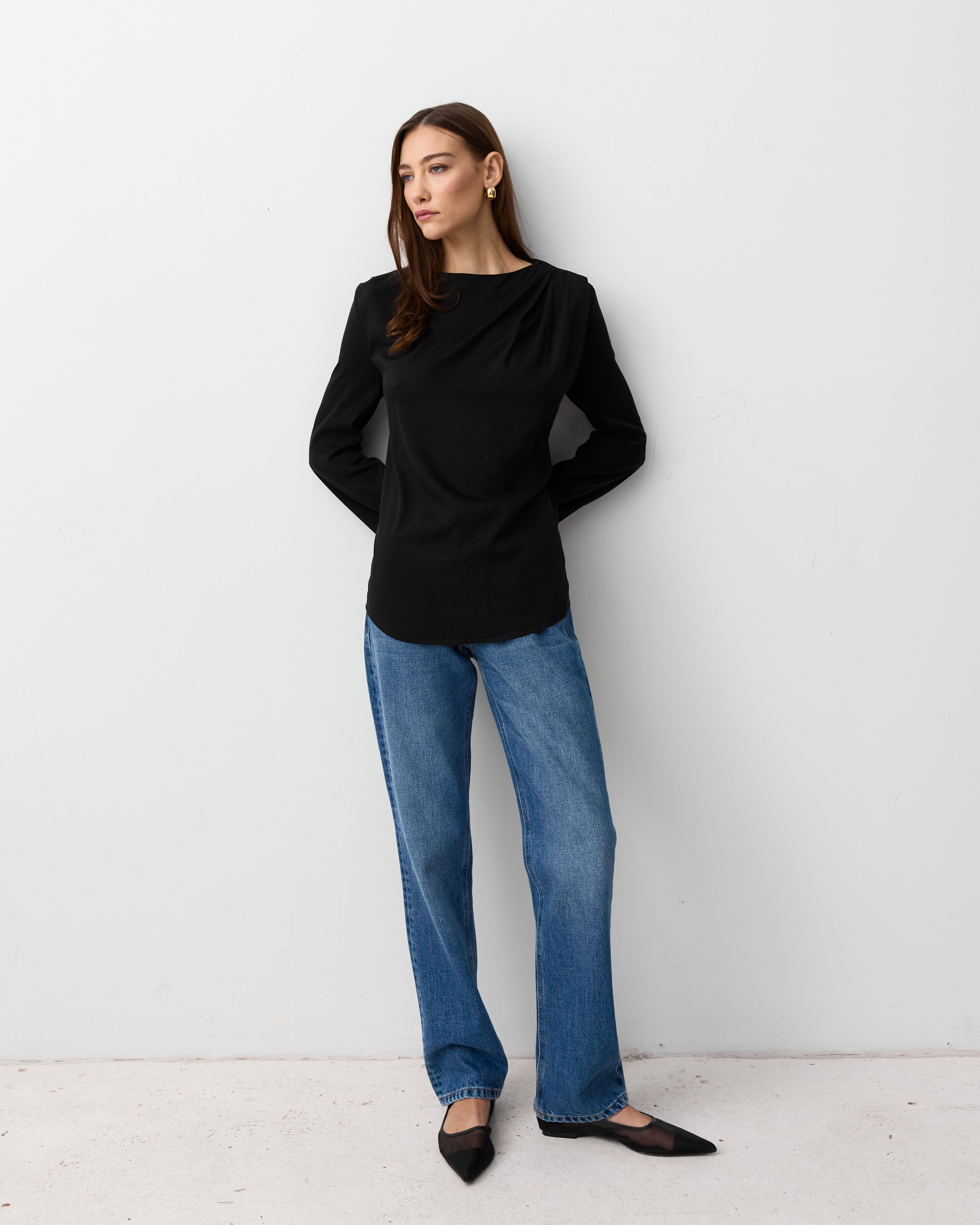 THE LONG SLEEVE DRAPED TOP- BLACK