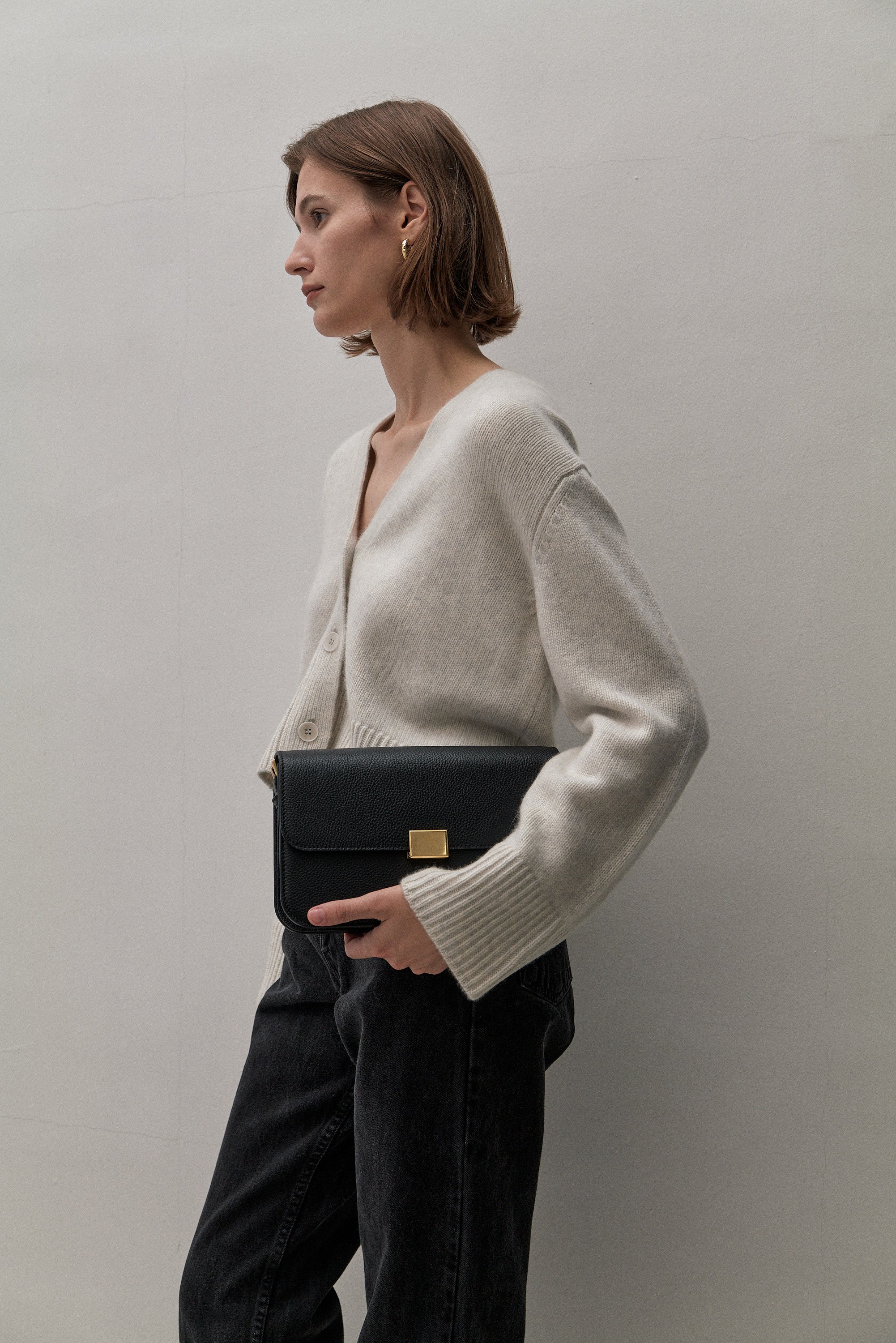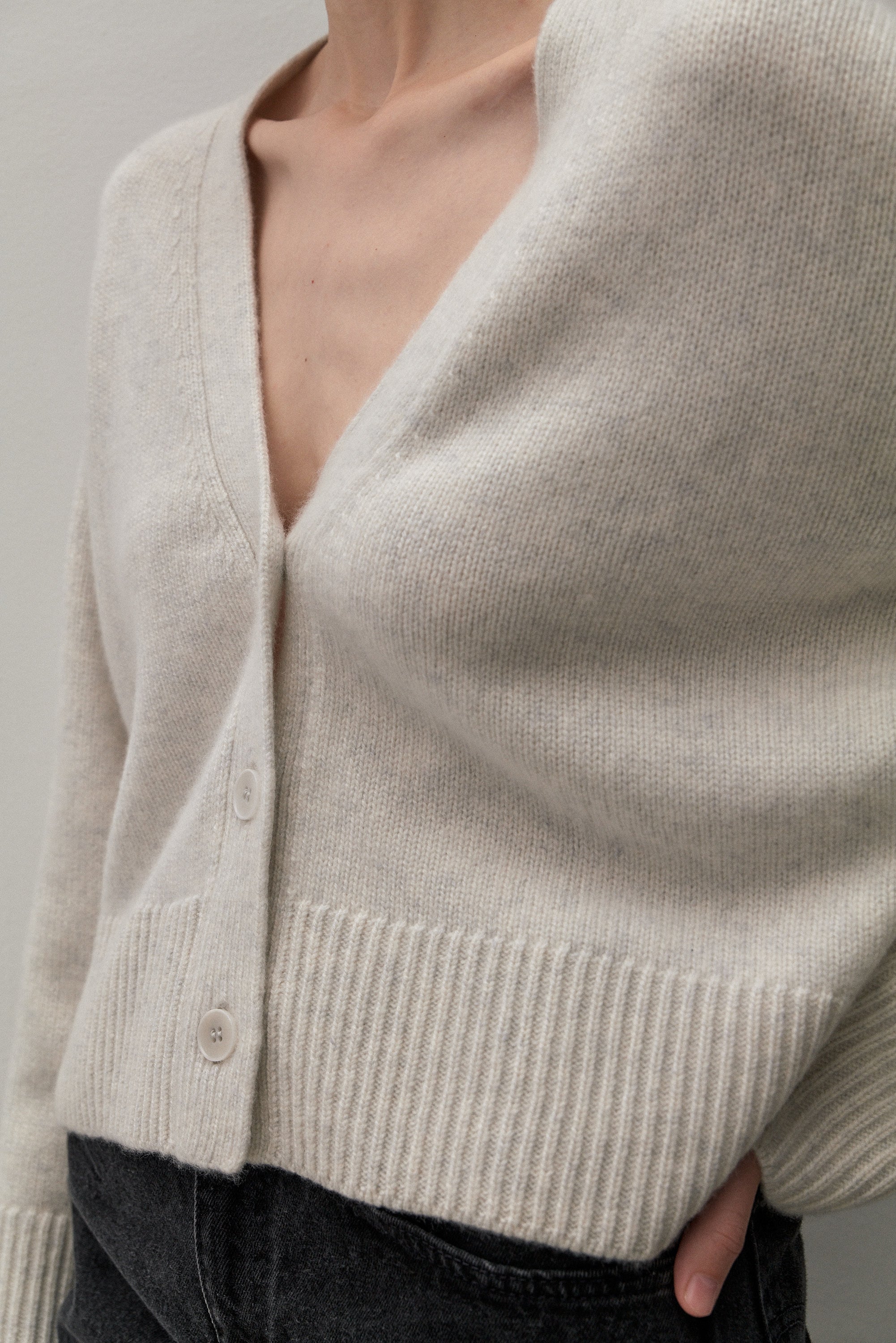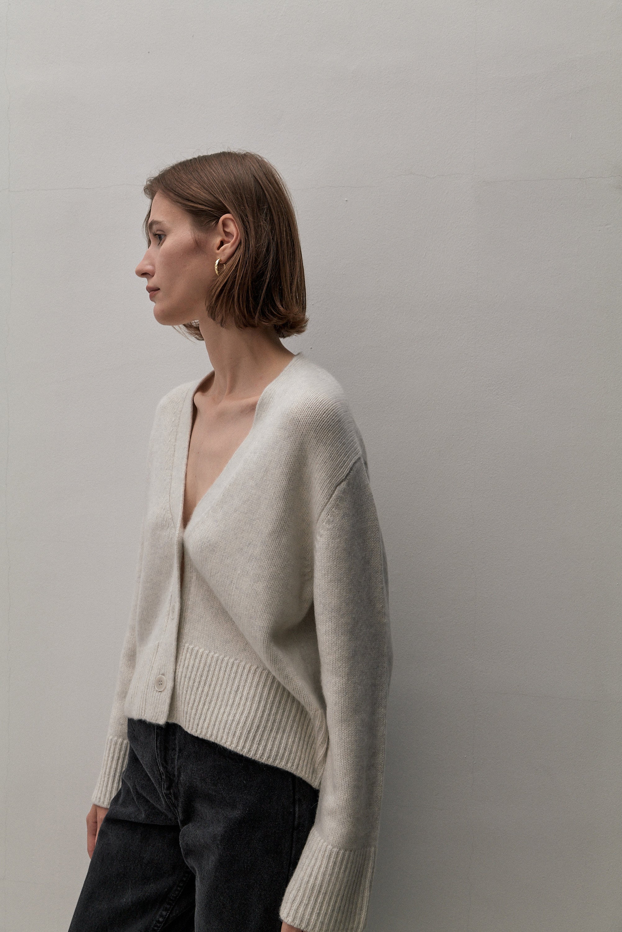 One of our favourite pieces in our cashmere collection, the Classic Cardigan is the perfect transeasonal staple for your wardrobe. With corzo buttons, a 100% Cashmere composition and wider sleeves, this relaxed silhouette makes layering effortless.