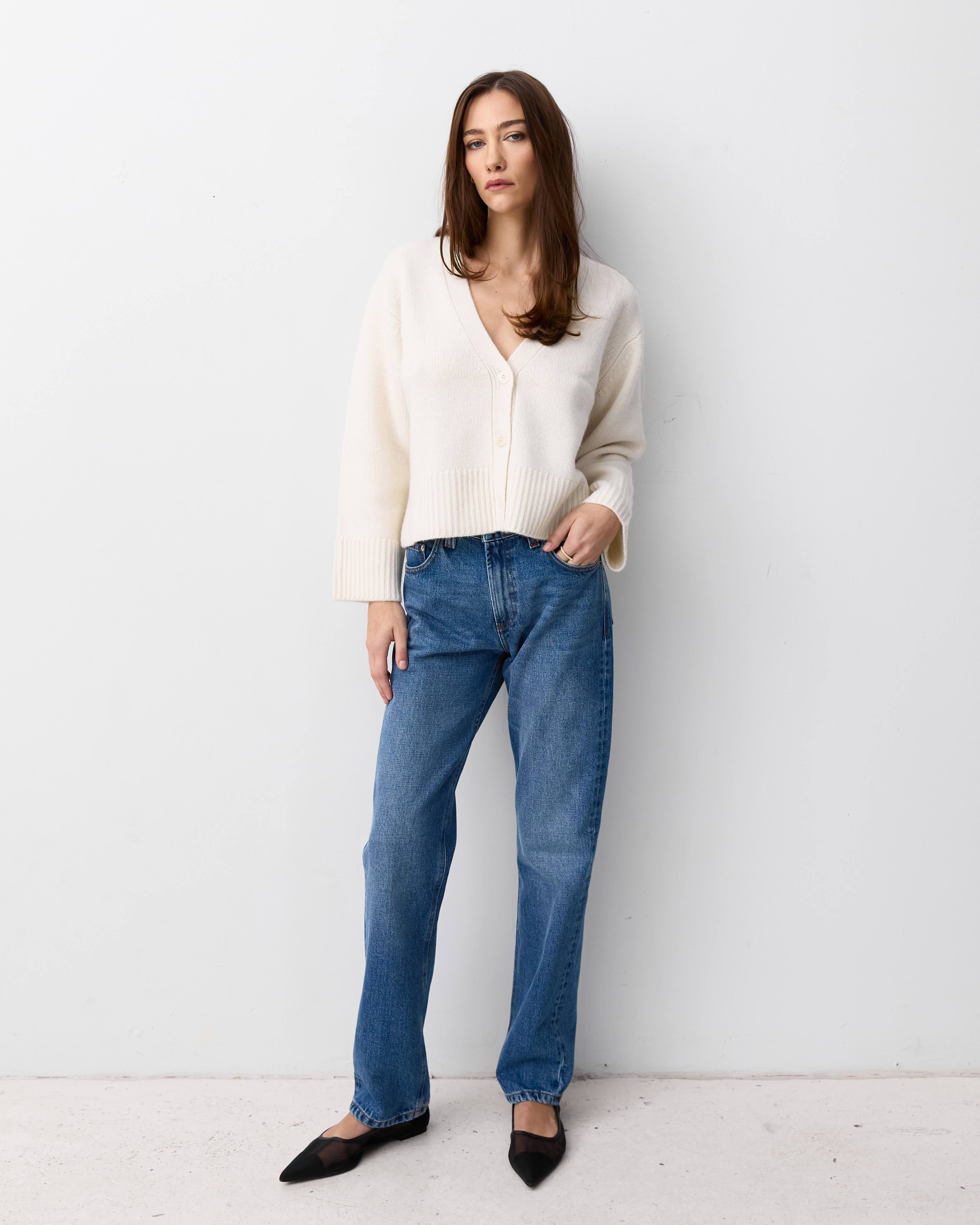 One of our favourite pieces in our cashmere collection, the Classic Cardigan is the perfect transeasonal staple for your wardrobe. With corzo buttons, a 100% Cashmere composition and wider sleeves, this relaxed silhouette makes layering effortless.