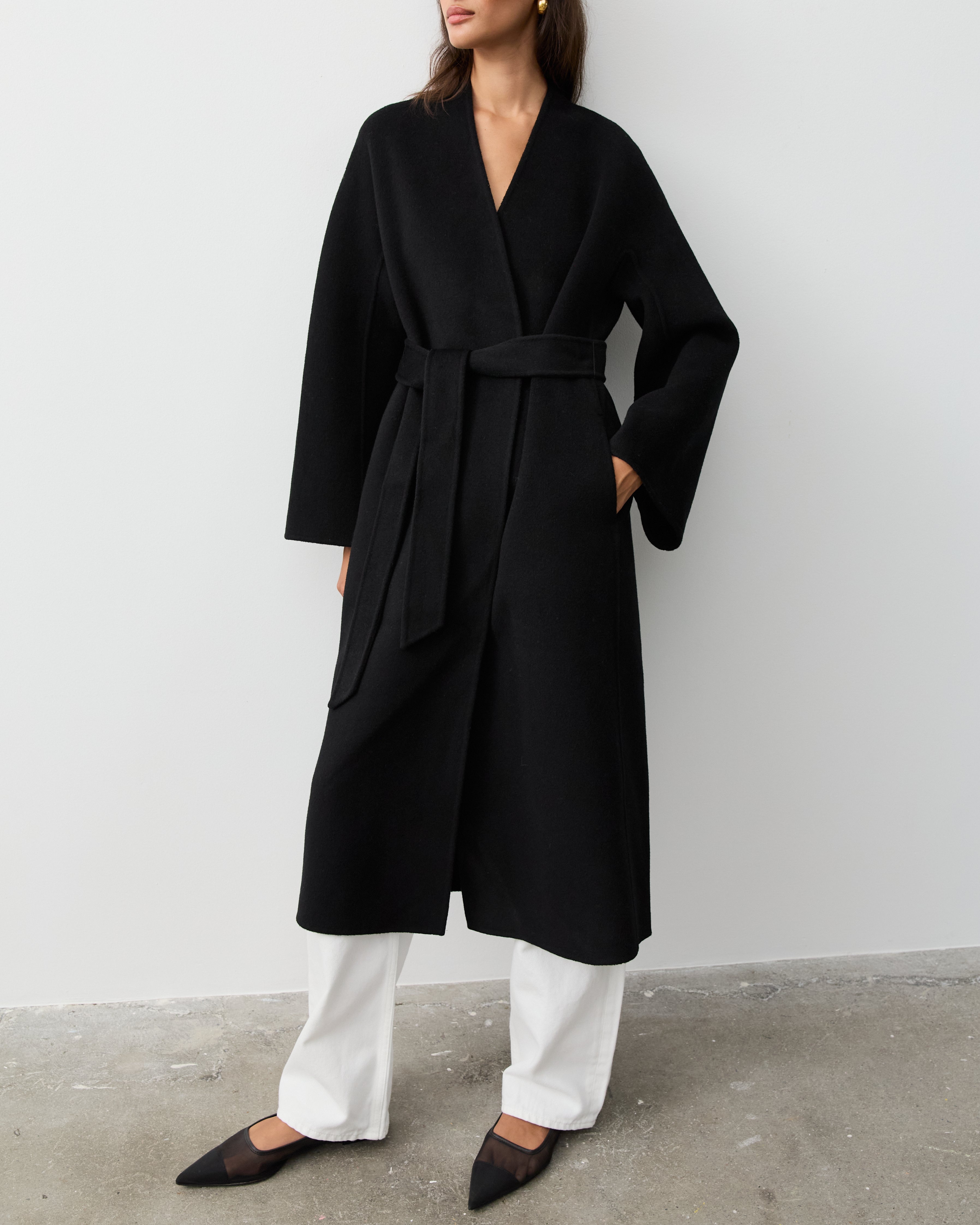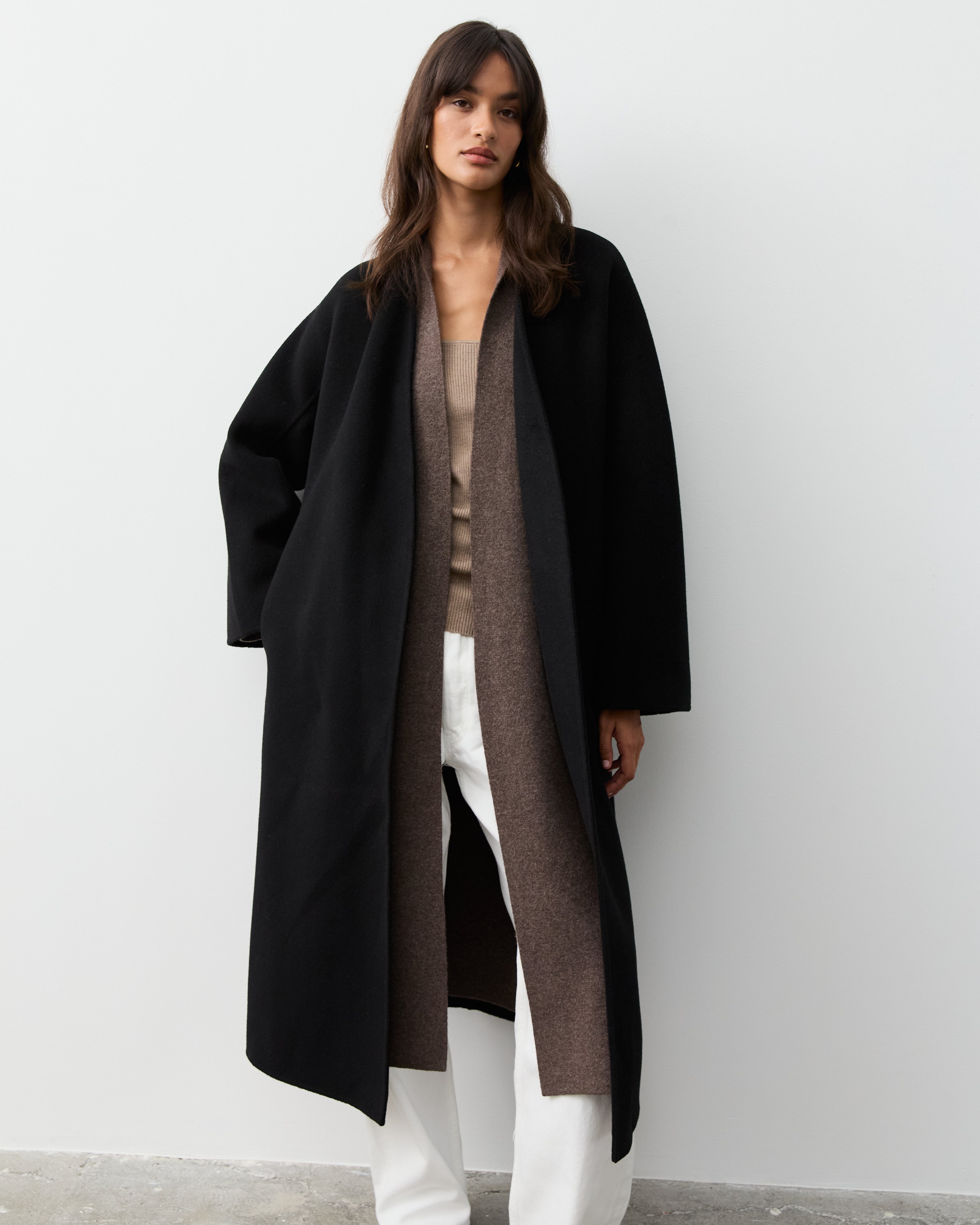Our double faced coats are created with our signature blends of cashmere and superfine merino wool, sourced from Inner Mongolia. This cashmere is celebrated for its softness, warmth, and lightweight properties, making it an ideal choice for luxurious outerwear. Complementing the cashmere, our fine merino wool is known for its incredible softness and excellent thermal regulation, adding durability and resilience to the fabric, ensuring our coats maintain their shape and beauty over time.
