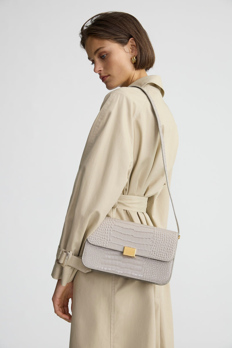 Our best selling classic shoulder bag now comes in our mock croc taupe leather as requested by so many of our customers. Born out of the desire for a classic and understated accessory that can elevate any outfit effortless and take you from work to weekend.