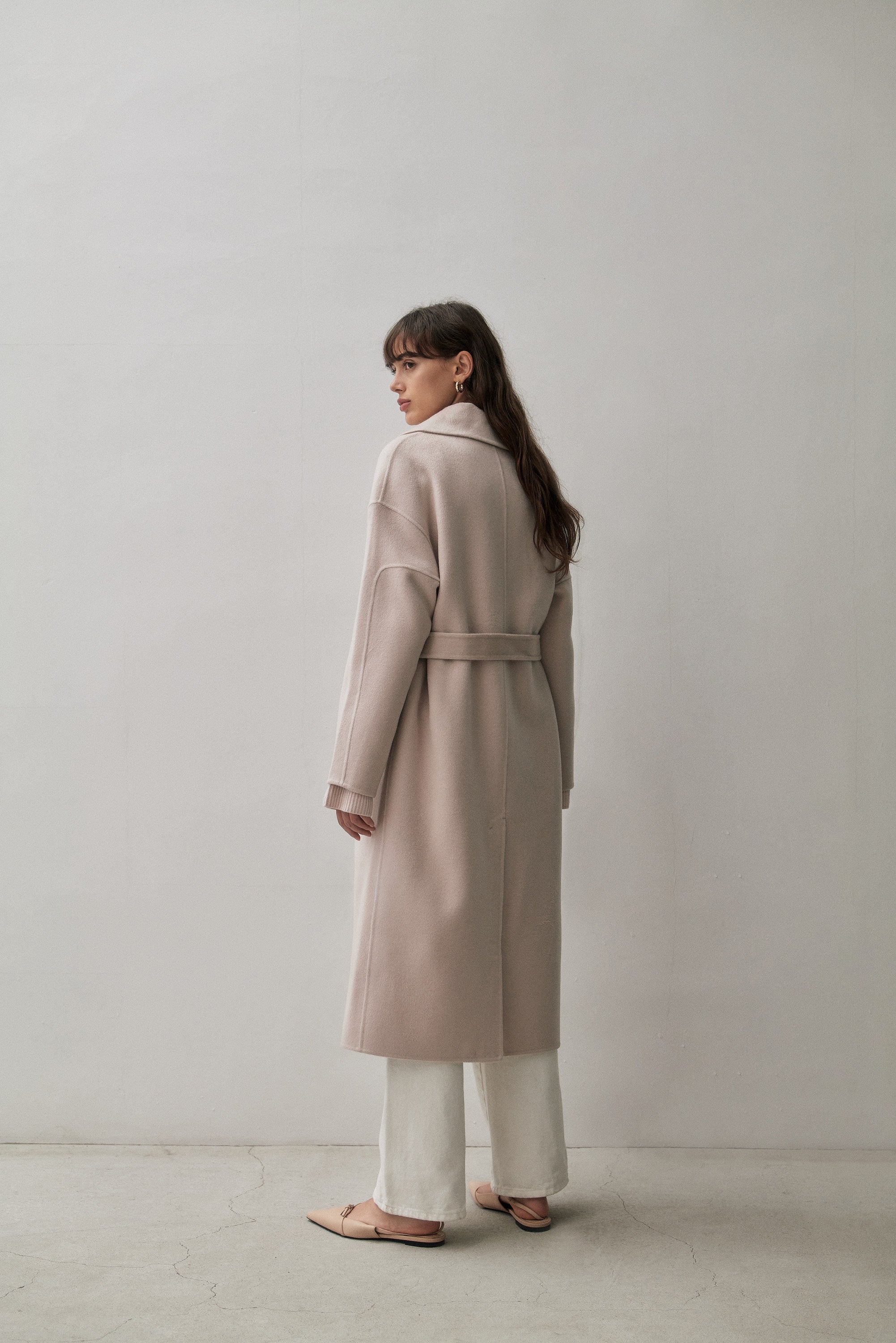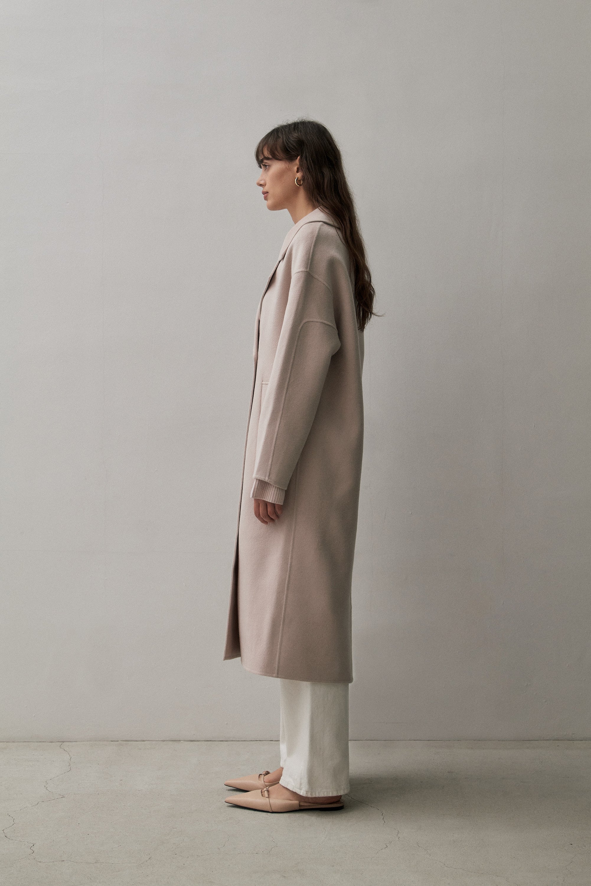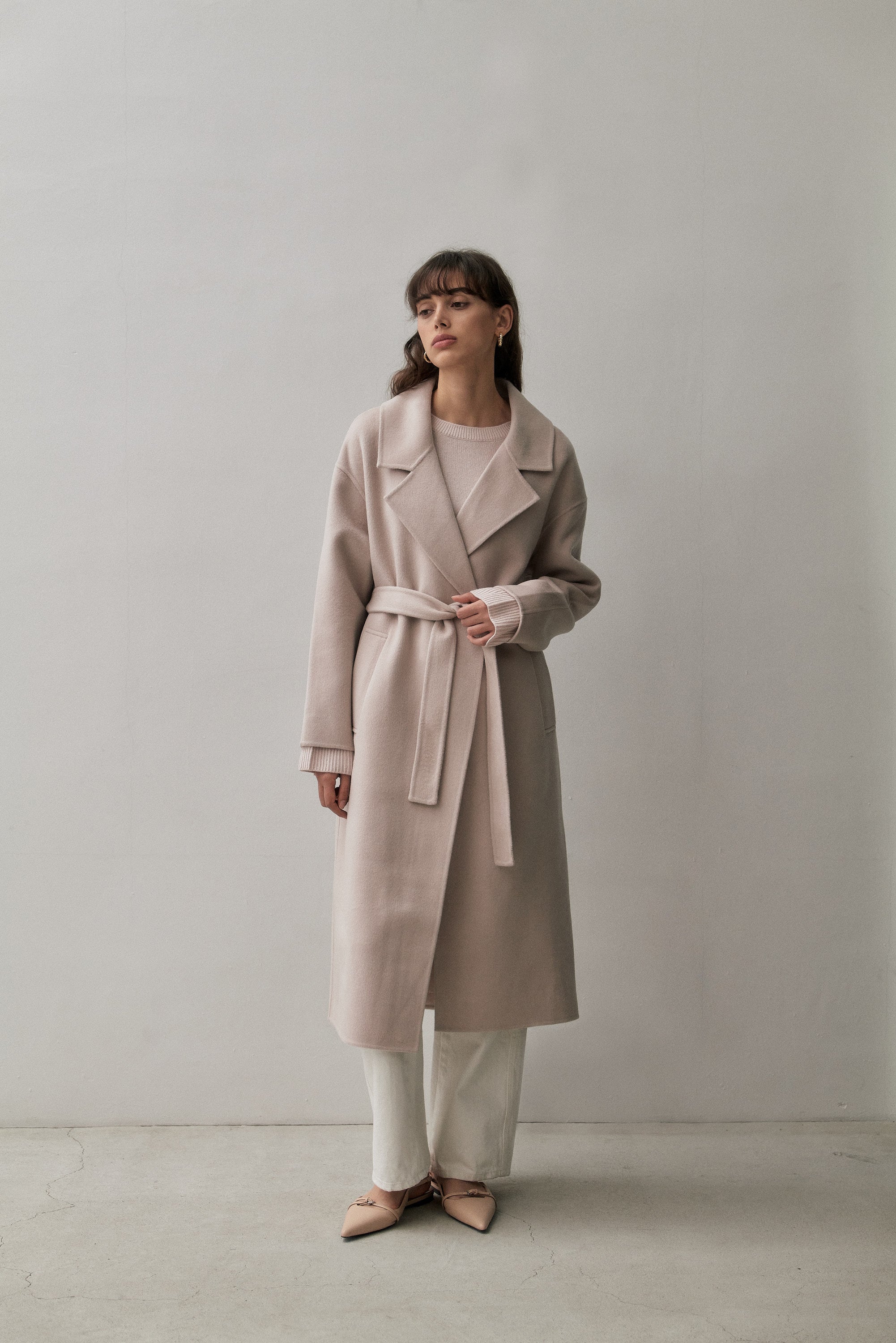Our double faced coats are created with our signature blends of cashmere and superfine merino wool, sourced from Inner Mongolia. This cashmere is celebrated for its softness, warmth, and lightweight properties, making it an ideal choice for luxurious outerwear. Complementing the cashmere, our fine merino wool is known for its incredible softness and excellent thermal regulation, adding durability and resilience to the fabric, ensuring our coats maintain their shape and beauty over time.