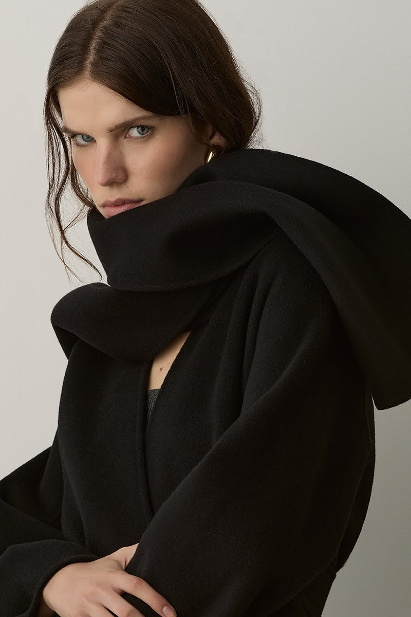 Our double faced coats are created with our signature blends of cashmere and superfine merino wool, sourced from Inner Mongolia. This cashmere is celebrated for its softness, warmth, and lightweight properties, making it an ideal choice for luxurious outerwear. Complementing the cashmere, our fine merino wool is known for its incredible softness and excellent thermal regulation, adding durability and resilience to the fabric, ensuring our coats maintain their shape and beauty over time.