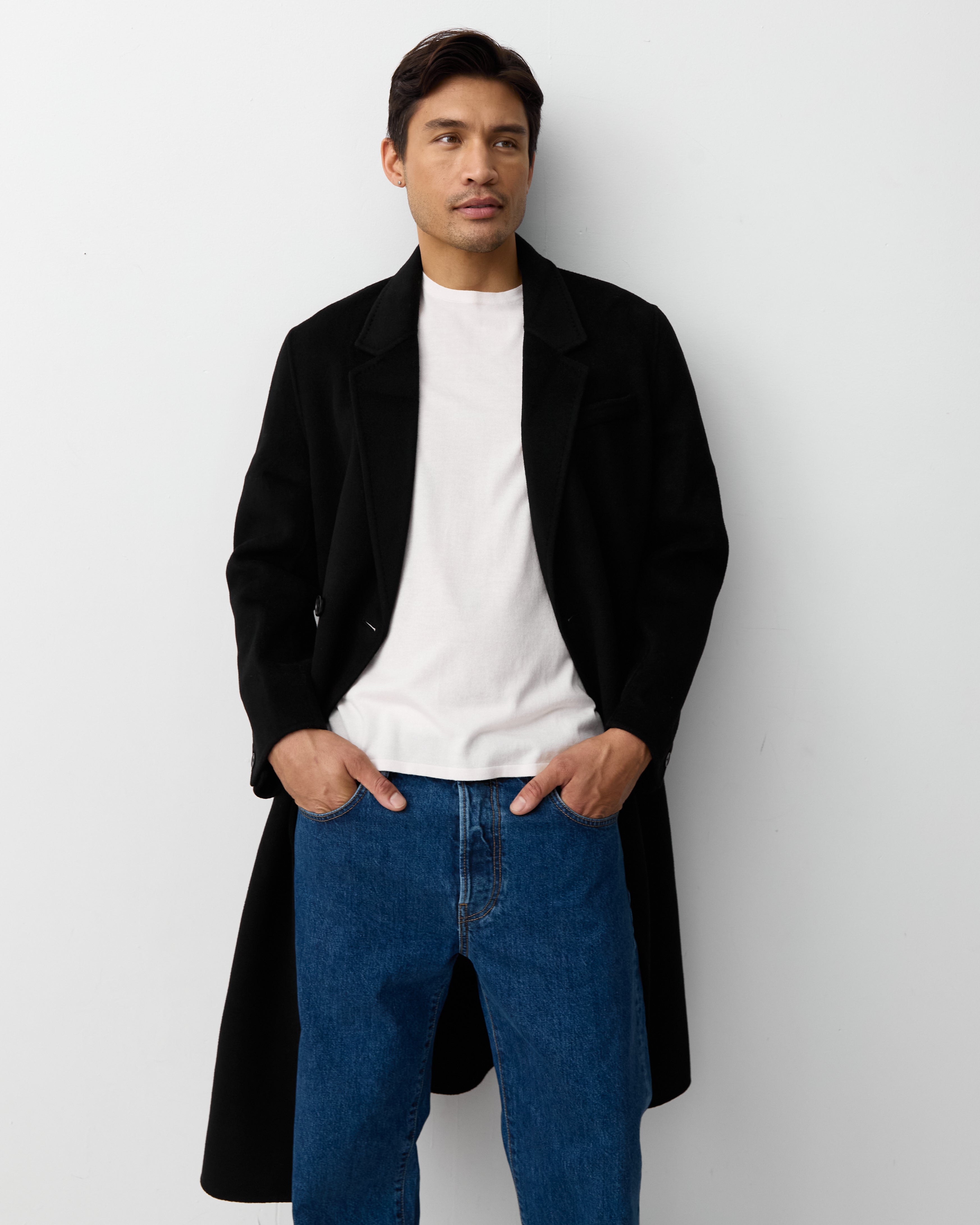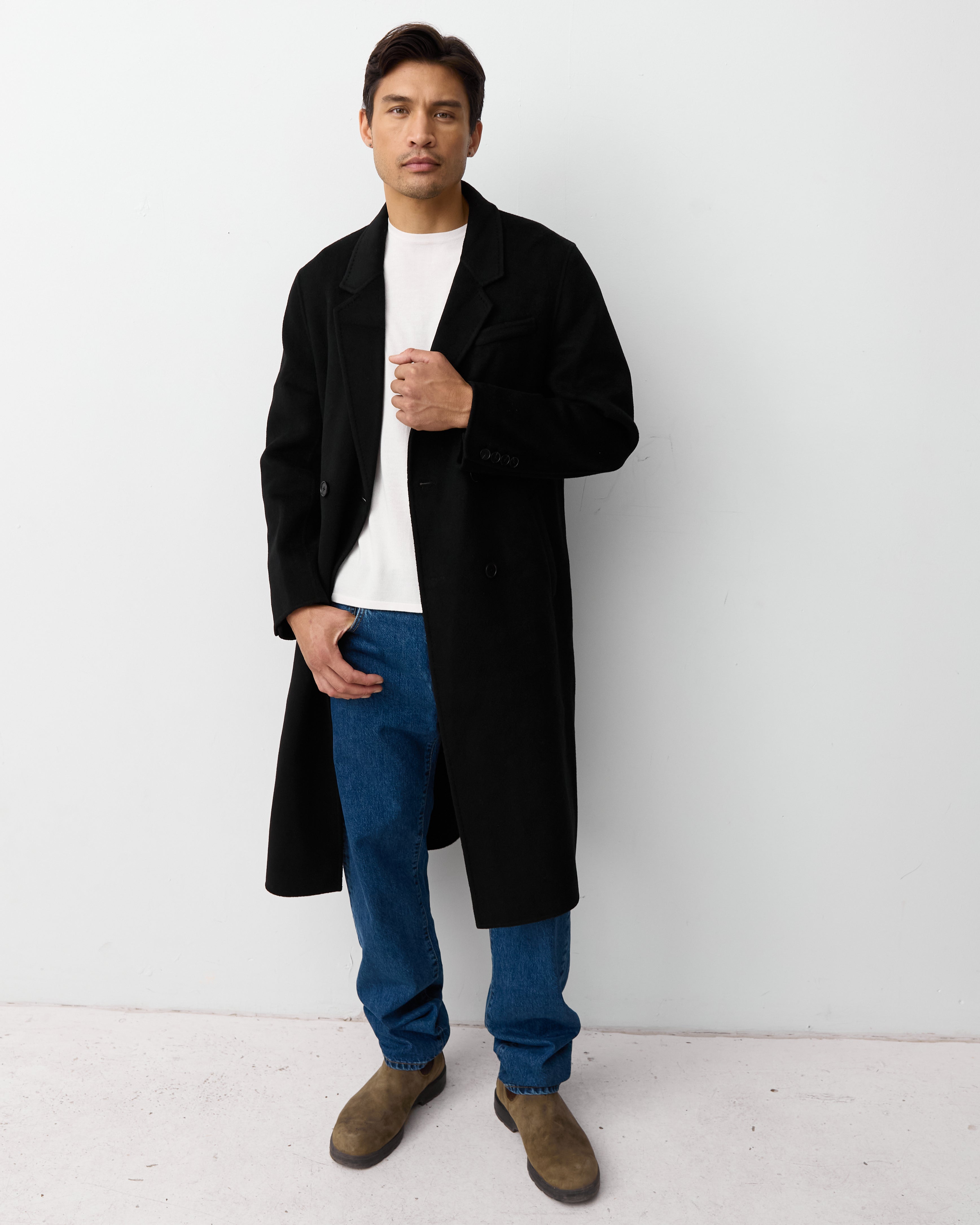 Discover our first coat curated for the other half. Made in our signature double faced cashmere merino wool blend and finished with a hand stitch. This is a double breasted coat created with a Scandinavian inspired relaxed fit.
