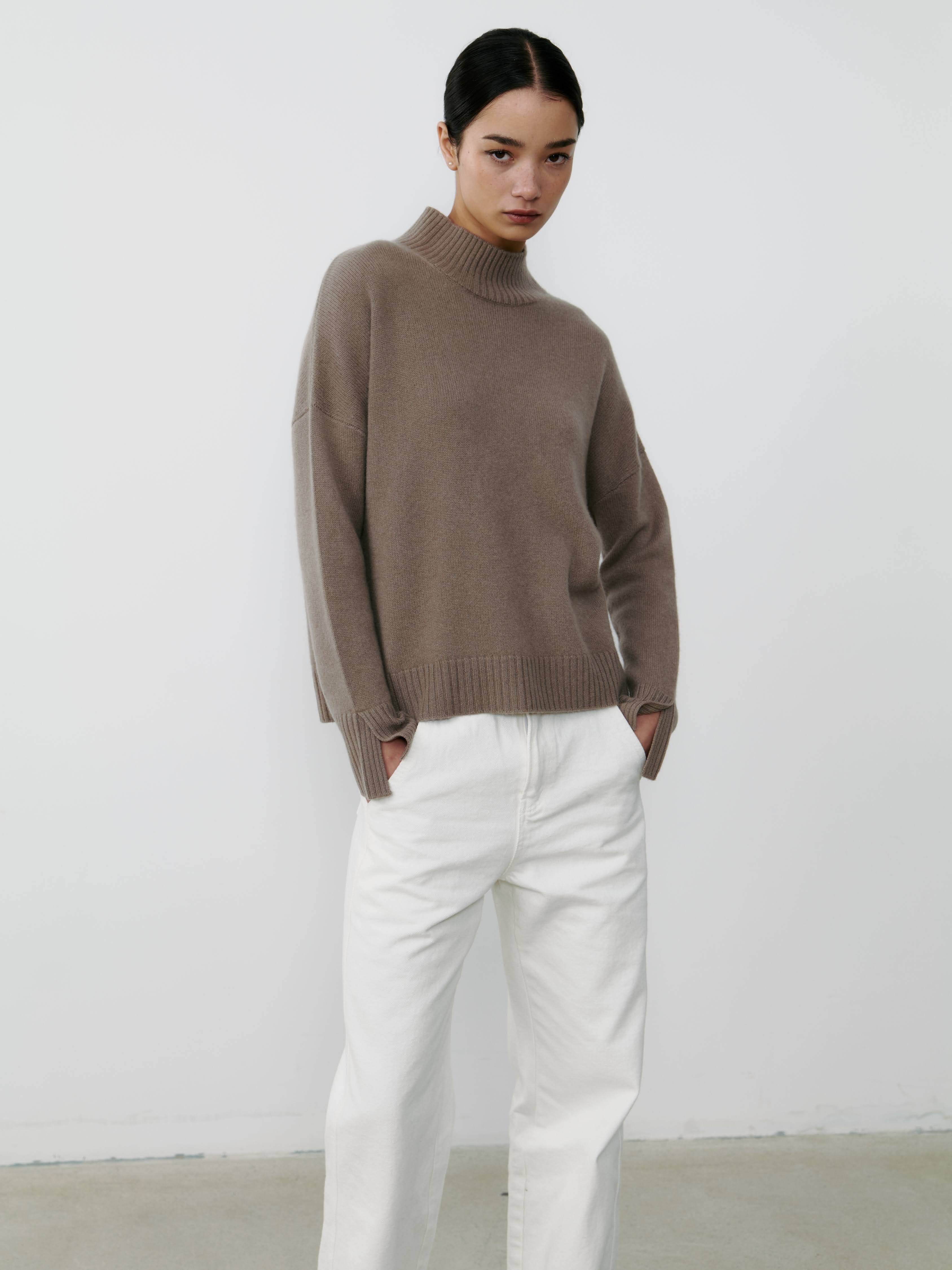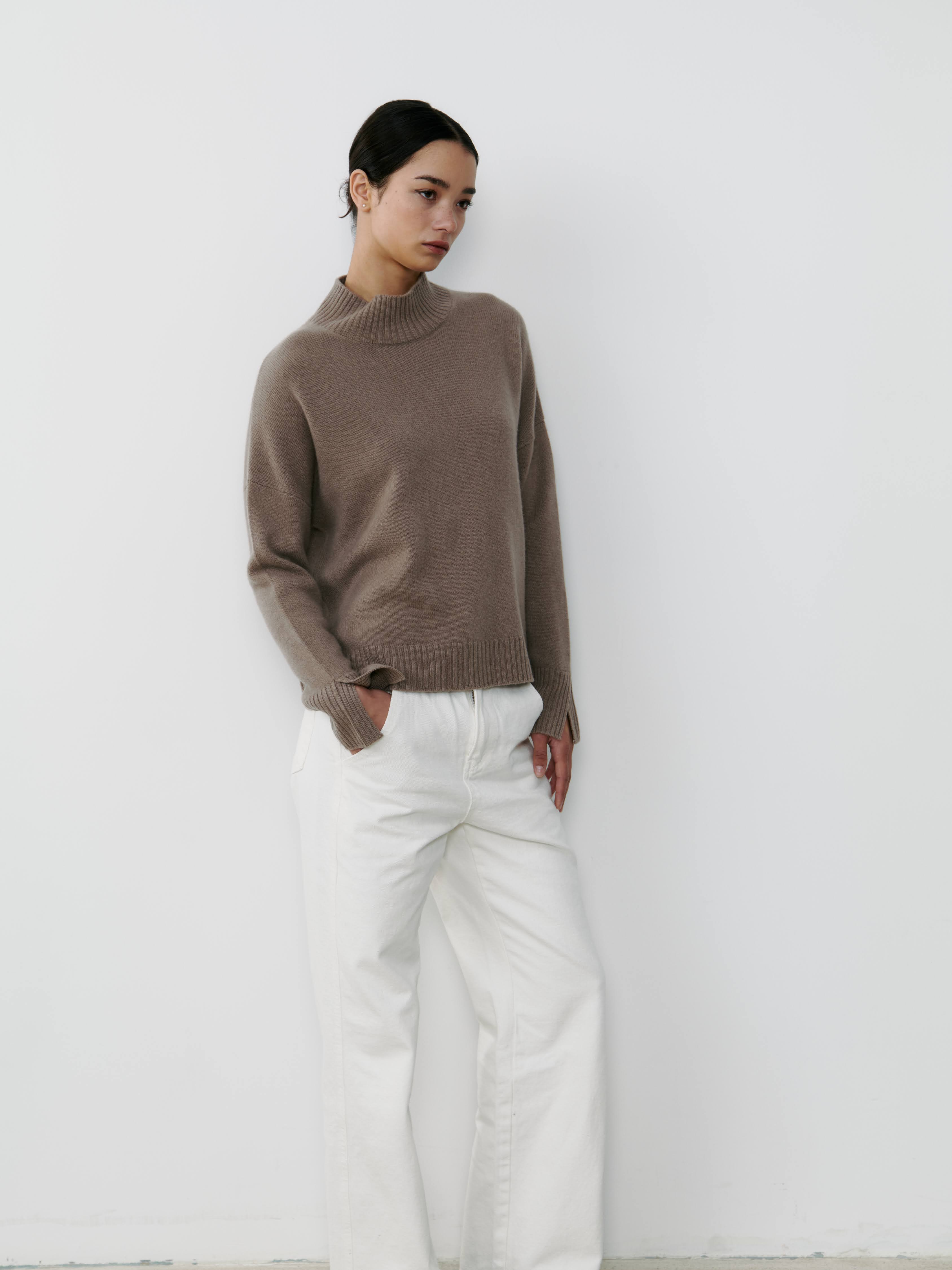 With a relaxed silhouette and split sleeves, The Mock Neck sweater is the most versatile piece to take you from casual to chic. This comfortable knit will be your ultimate staple this season.