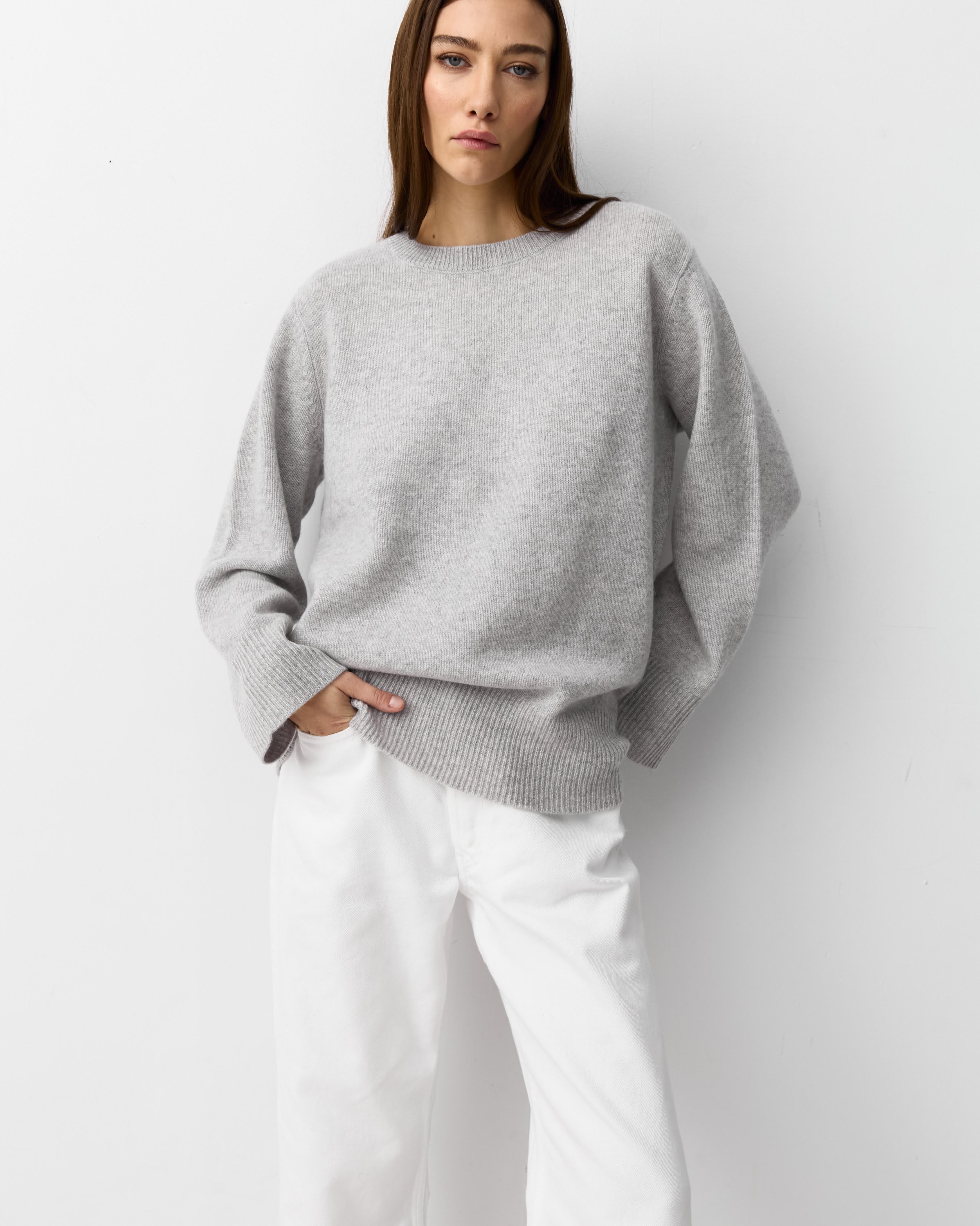 There is nothing more essential than a classic cashmere crew knit. Designed with a relaxed fit, bell sleeves and made with our signature royal cashmere this is a beautiful piece you can wear layered over denim or tucked into a silk skirt.