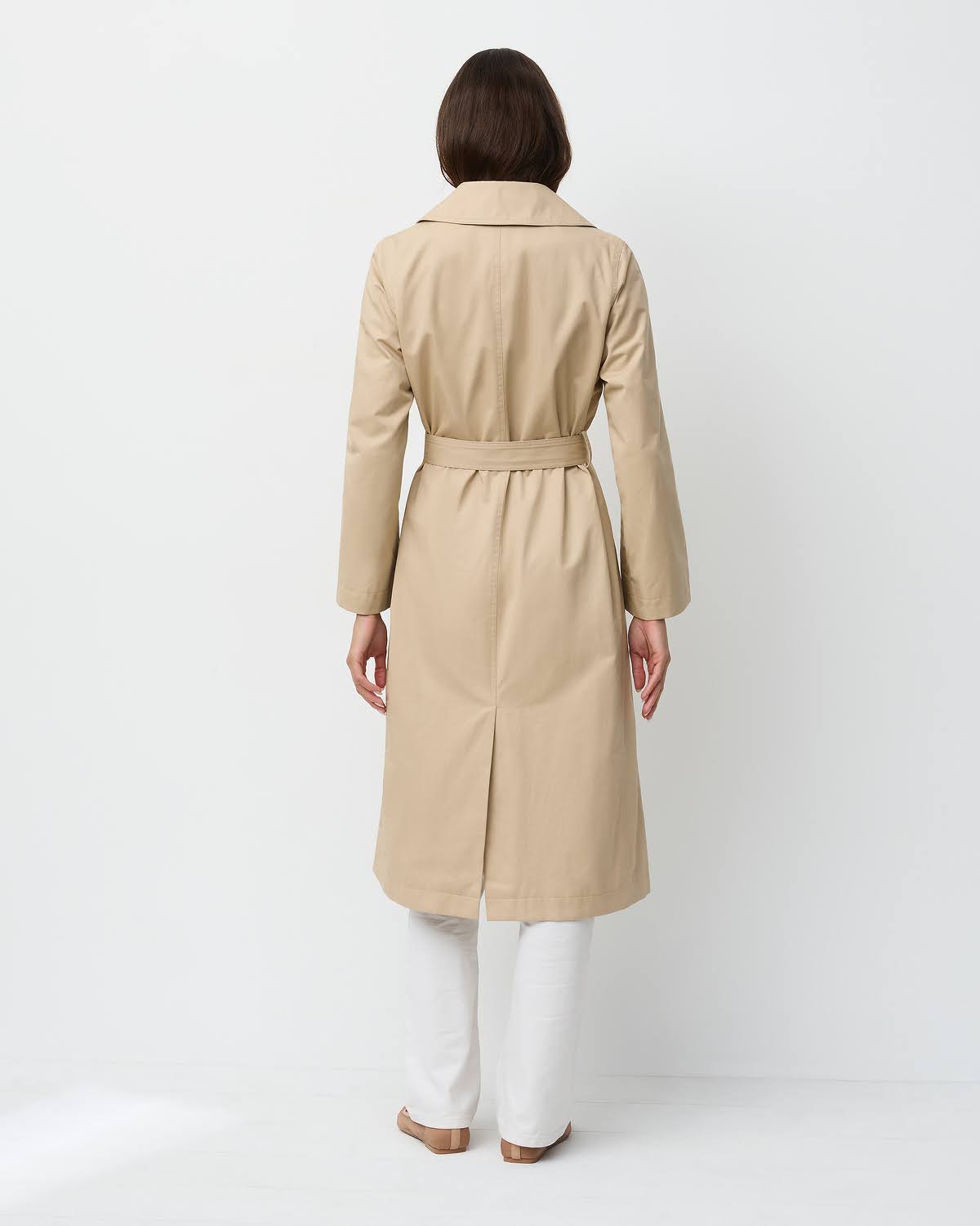 An elegant trench coat to keep you both dry and protected from the wind. Cut from the same silhouette as our tailored coat this is the perfect alternative for transitional weather. Inspired by the Danish girl riding her bike through the streets of Copenhagen. Pair with our cashmere knitwear and weekend tote for the full look.